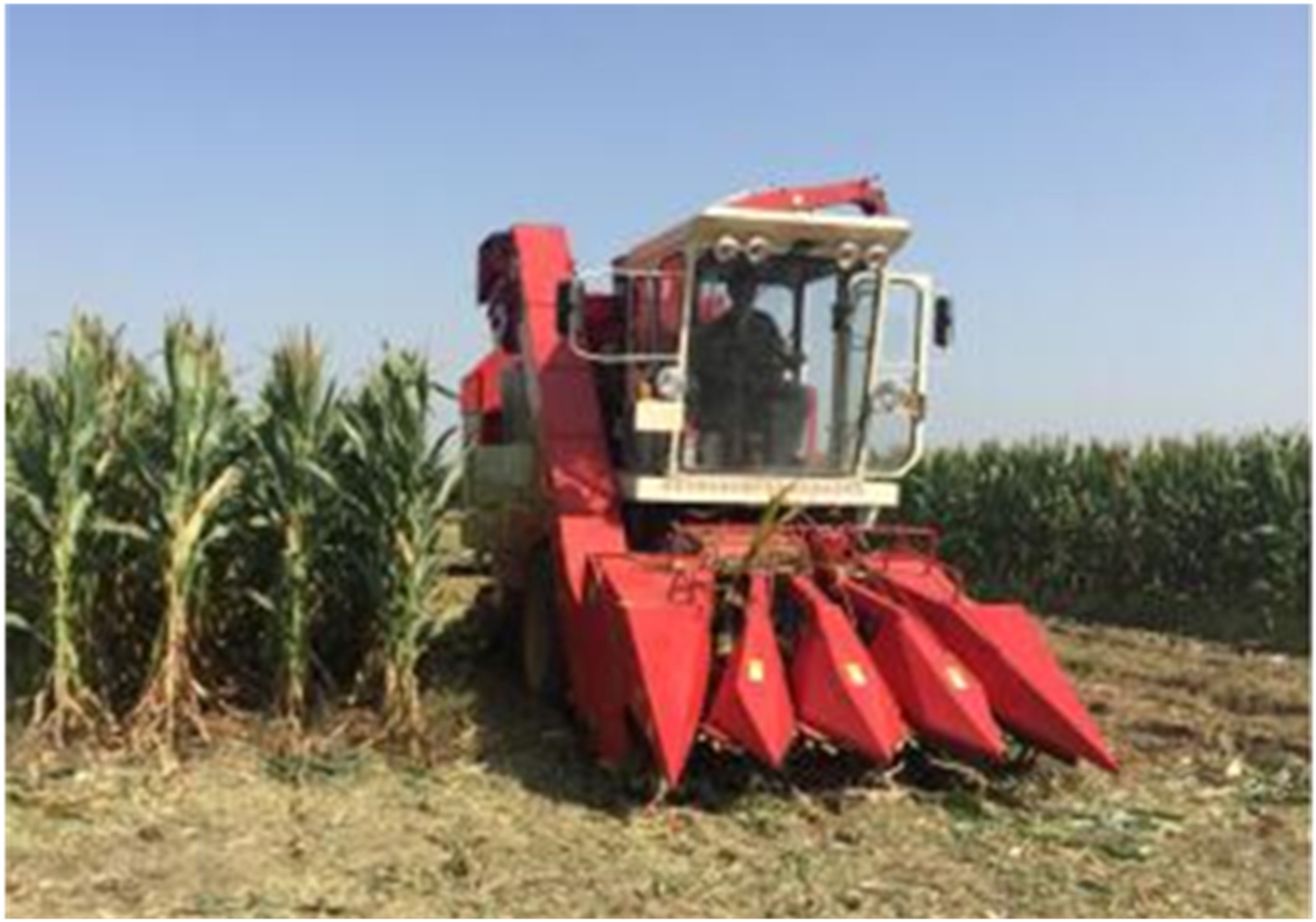- GB/T 21962-2020; Test Methods for Corn Combine Harvester. State Administration for Market Regulation: Beijing, China; Standardization Administration of the P.R.C.: Beijing, China, 2020.