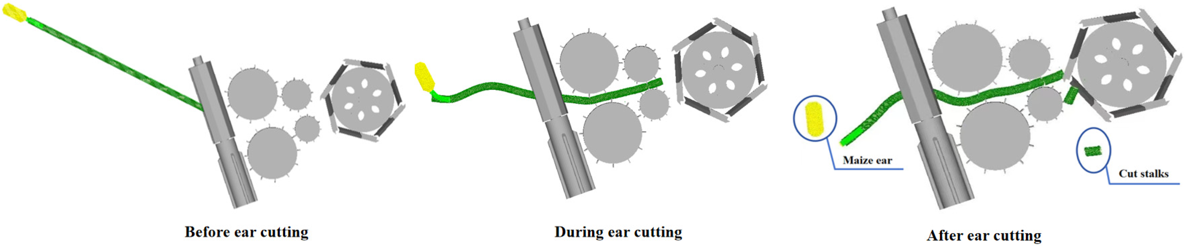- Wang, Z.-H.; Zhao, Y.-J.; Liu, Y.; Huang, D.-Y. The Study of the Work Parameters of the Corn Harvester Cutter. In Computer and Computing Technologies in Agriculture XI, Proceedings of the 11th IFIP WG 5.14 International Conference, CCTA 2017, Jilin, China, 12–15 August 2017; Li, D., Zhao, C., Eds.; IFIP Advances in Information and Communication Technology; Springer: Cham, Switzerland, 2019; Volume 545, pp. 293–301. [Google Scholar] [CrossRef]