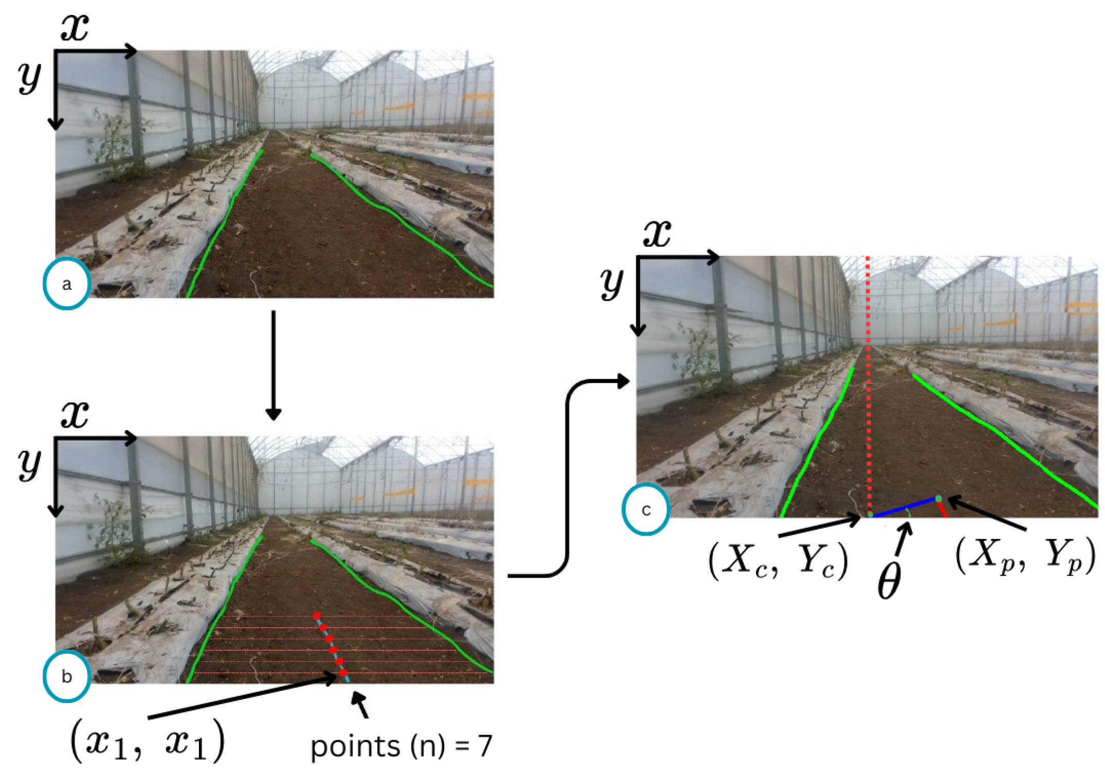 15] introduced a prediction-point Hough transform algorithm that uses a novel grayscale factor for improved image segmentation and achieves accurate navigation path fitting for greenhouse cucumber-picking robots. Meanwhile, ref. [