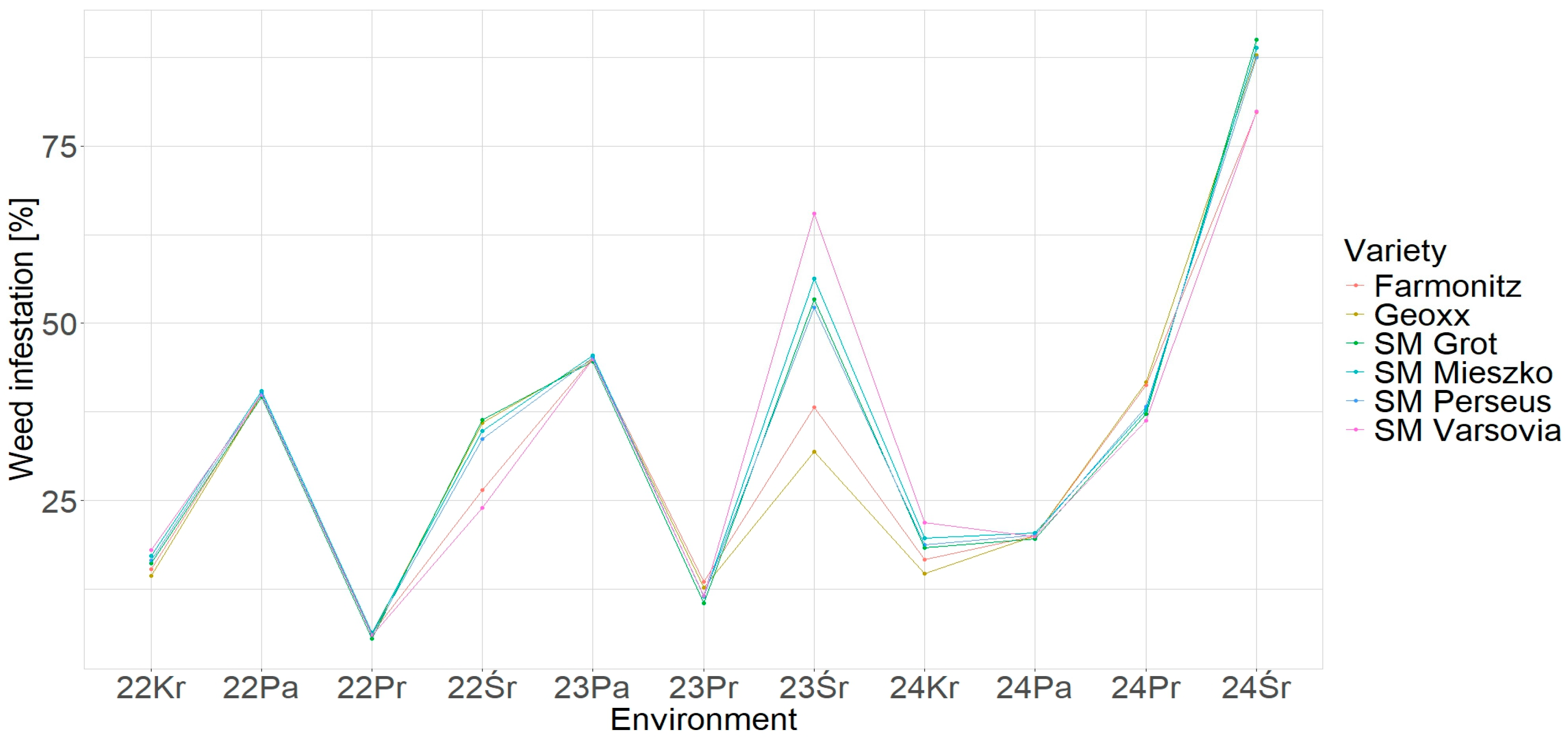 3.1.1. Environmental Variation in Weed Pressure
