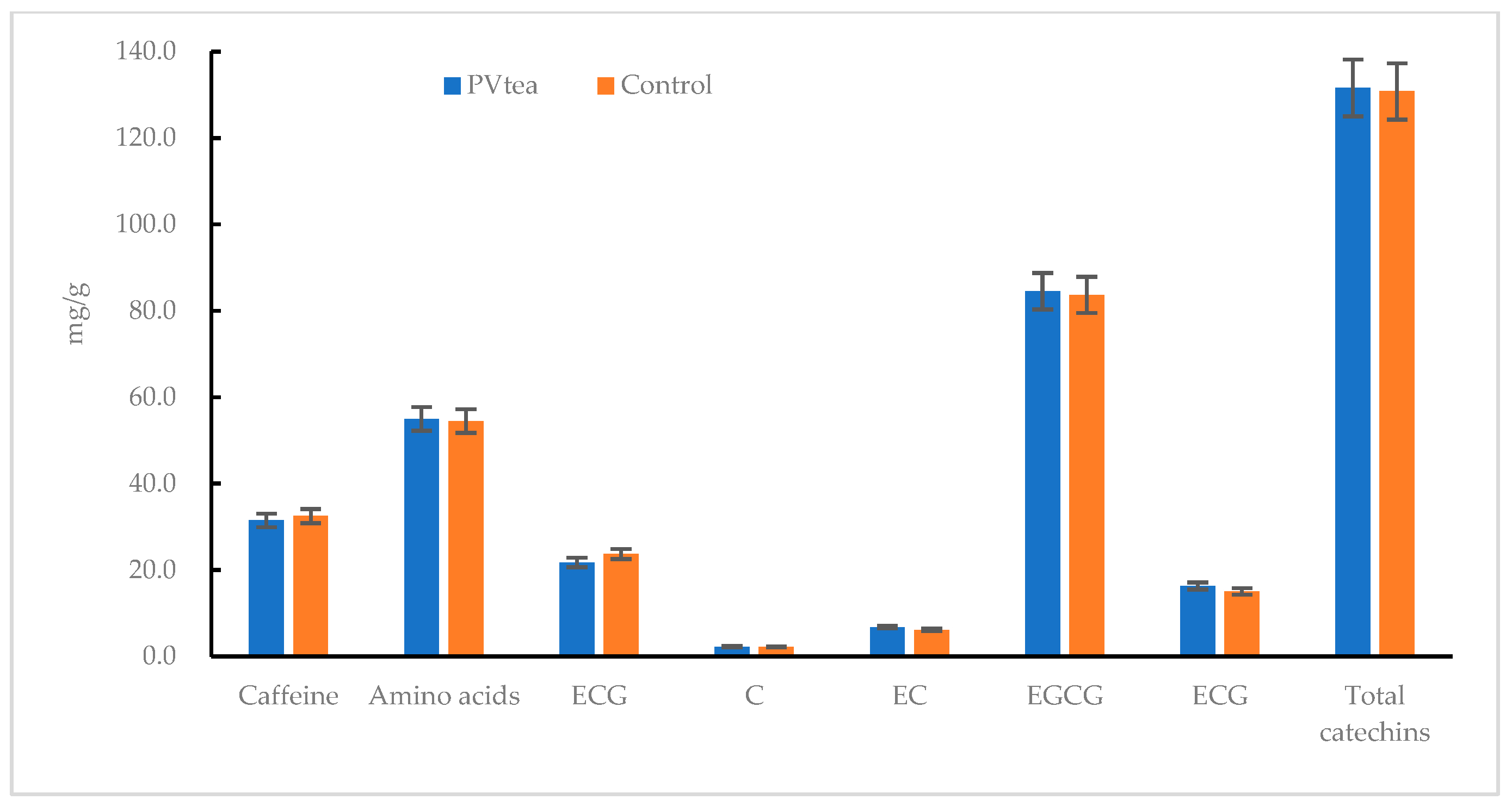 2.7.3. Determination of Catechins and Caffeine