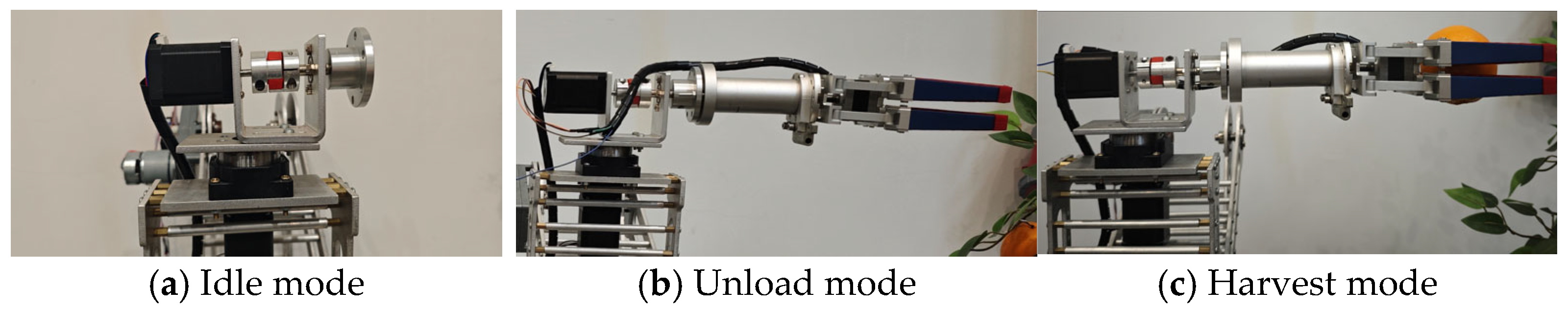 - Lou, K.; Wang, Z.; Zhang, B.; Xu, Q.; Fu, W.; Gu, Y.; Liu, J. Analysis and Experimentation on the Motion Characteristics of a Dragon Fruit Picking Robot Manipulator. Agriculture 2024, 14, 2095. [Google Scholar] [CrossRef]
