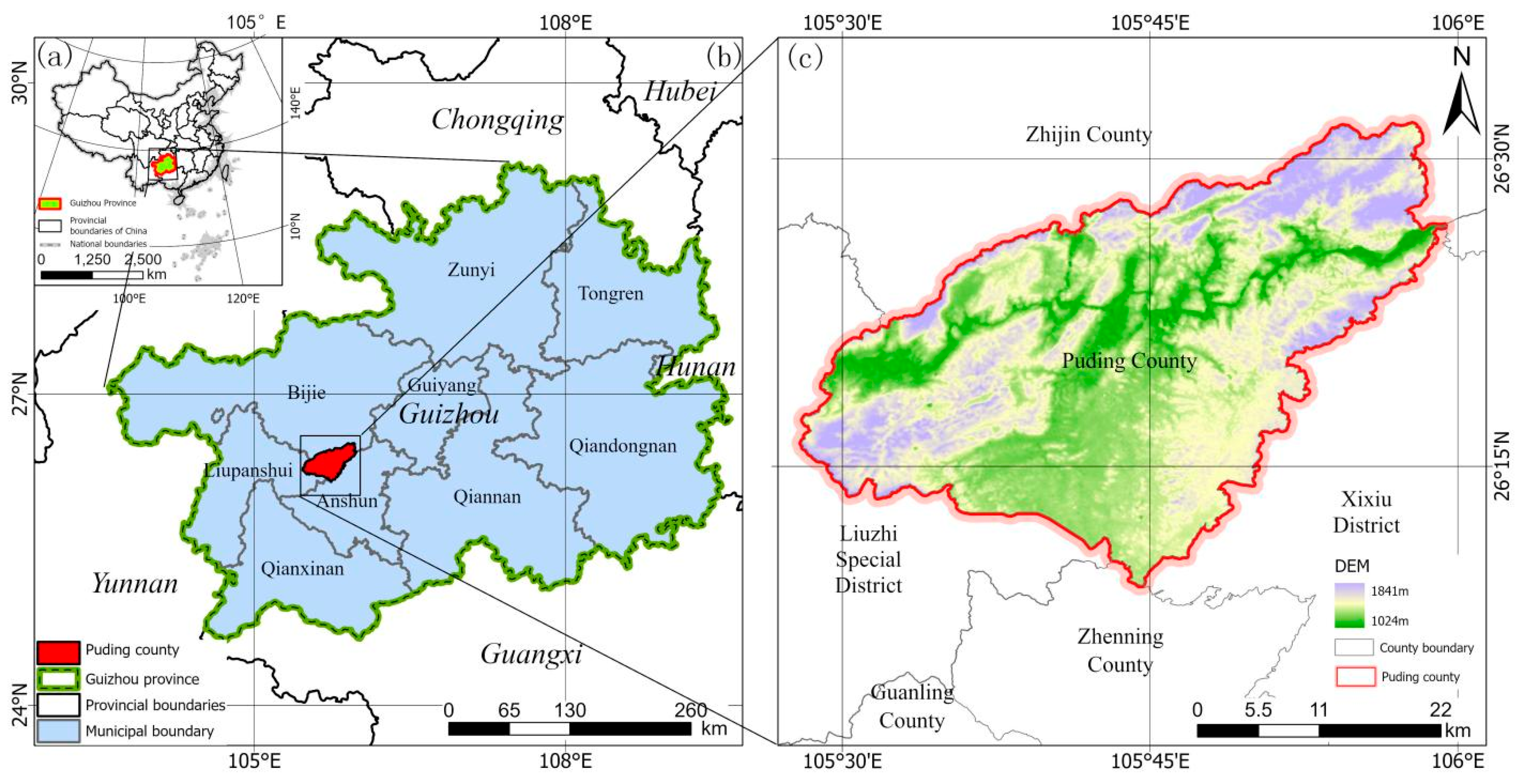 - Jincheng, H.; Zaike, G. The Current Situation, Problems and Countermeasures of Soil Erosion in Guizhou Province. China’s Soil Water Conserv. 2024, 8, 17–19. [Google Scholar]