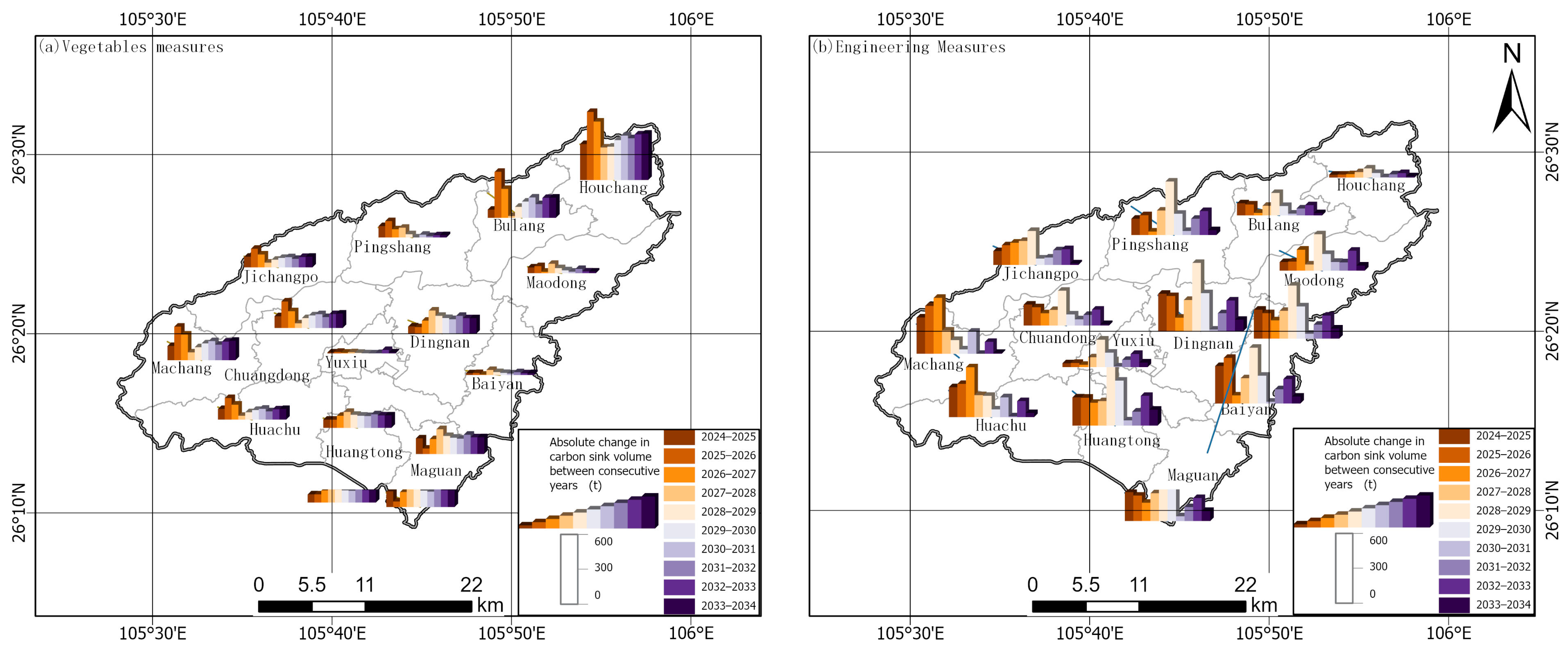 3.3. Projected Soil and Water Conservation Carbon Sink Capacity for 2025–2034