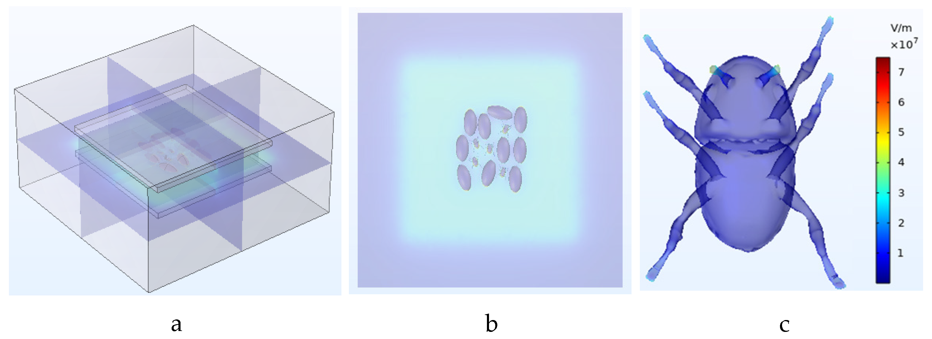 3.2. Electric Field Distribution Simulation and Its Correlation with Insecticidal Effect