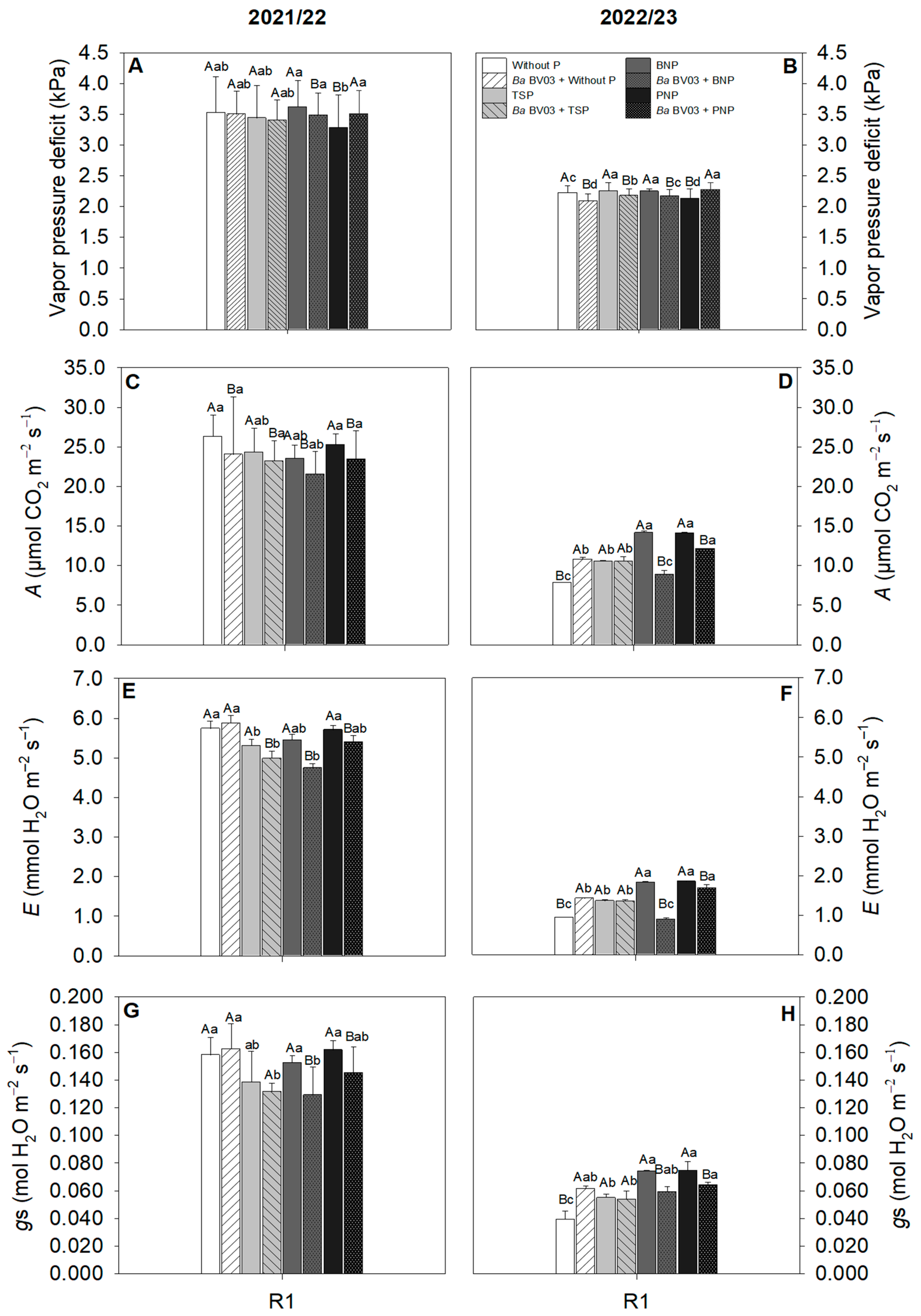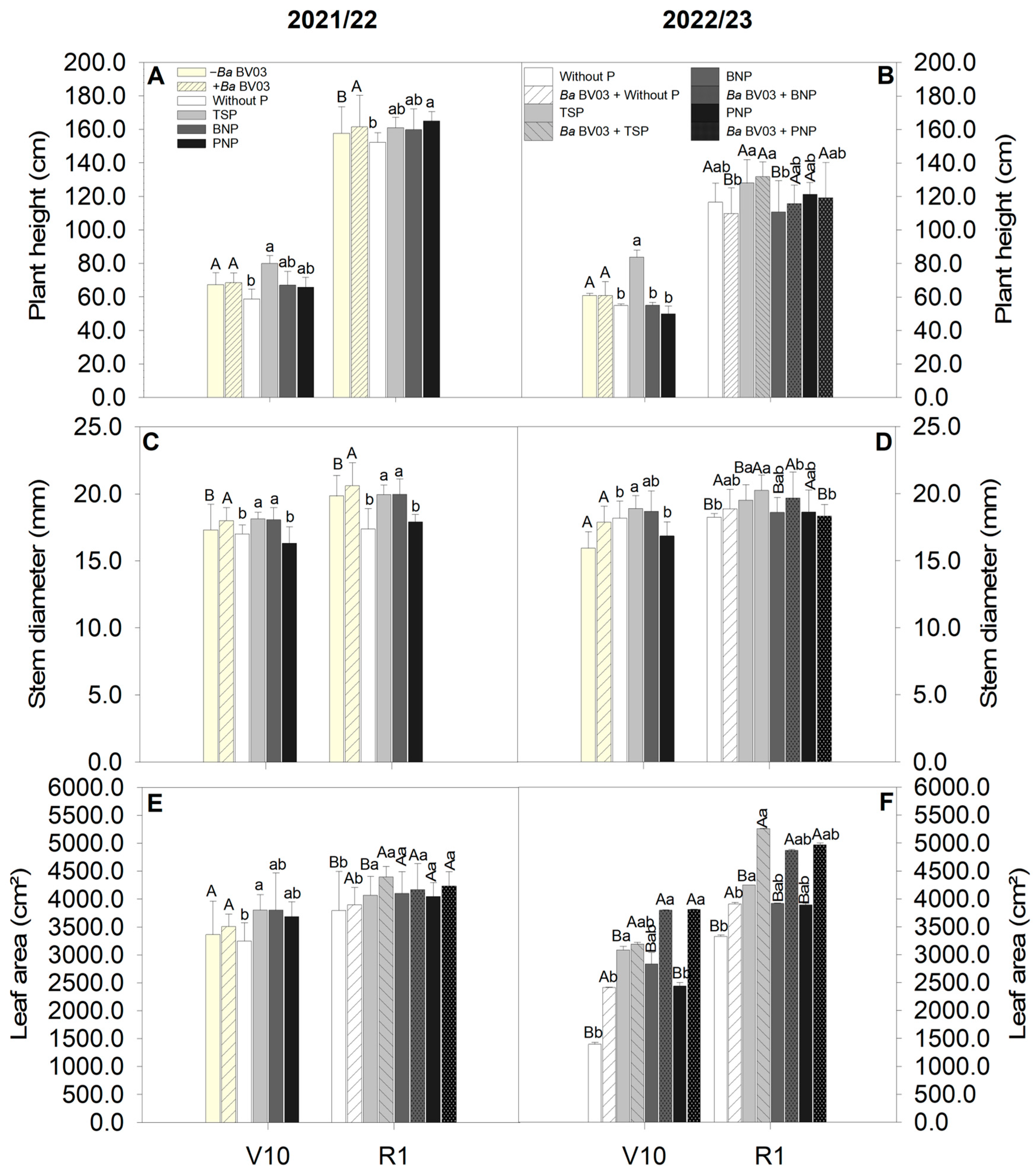 APA StyleFerreira, L. d. S., Luiz Santos, H., Silva, G. F. d., Carnietto, M. R. A., Nogueira, C. H. d. C., & de Almeida Silva, M. (2026). Interaction of Bacillus amyloliquefaciens BV03 and Phosphorus Sources on Corn Physiology, Nutrition, and Yield. Agriculture, 16(1), 44. https://doi.org/10.3390/agriculture16010044