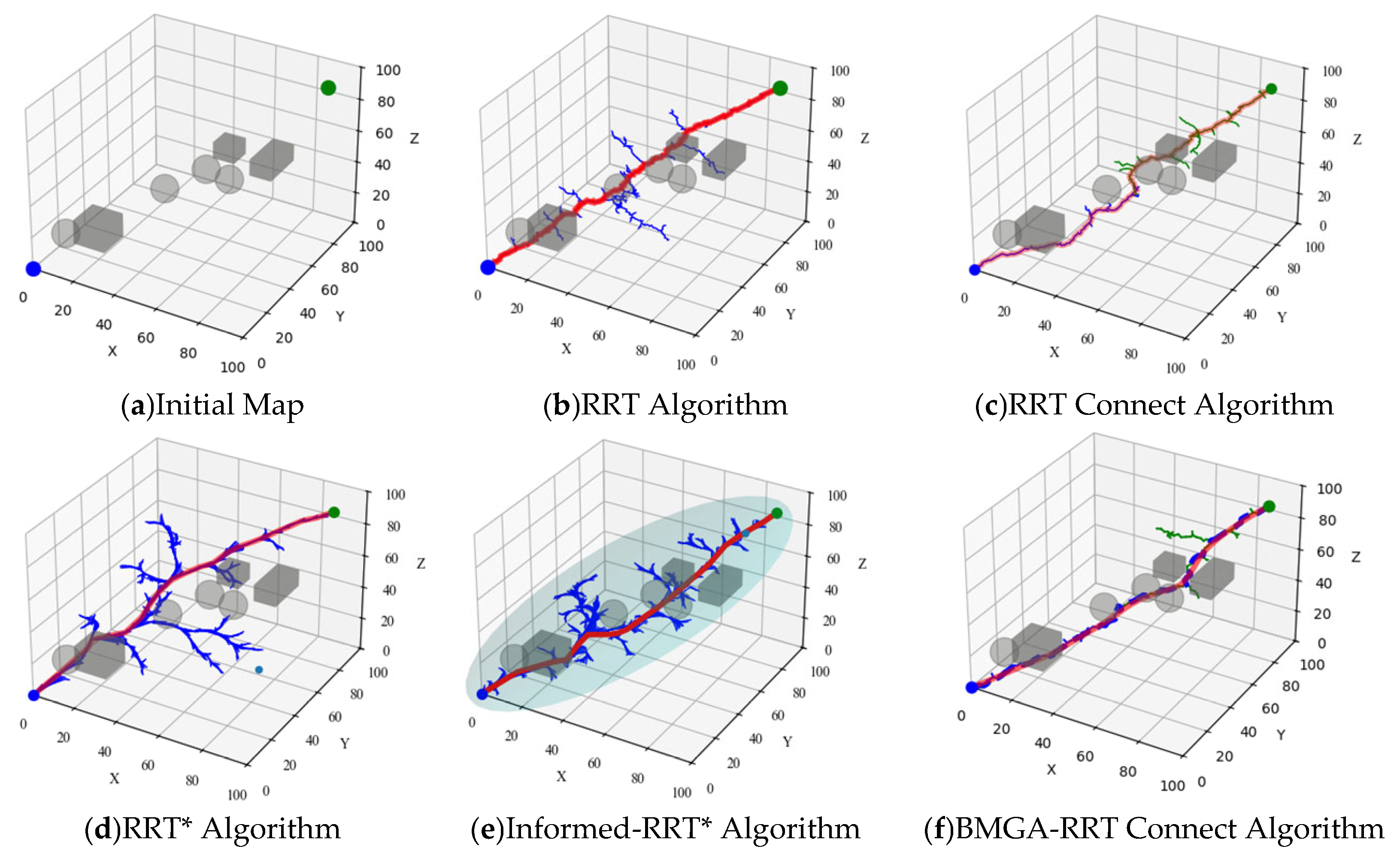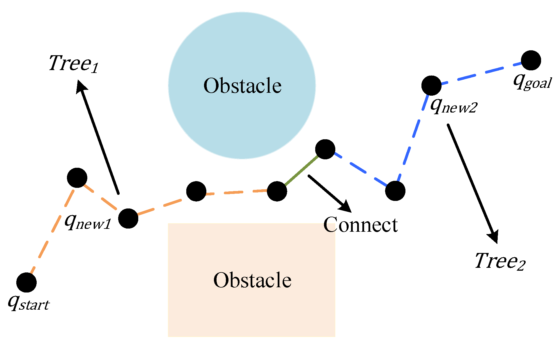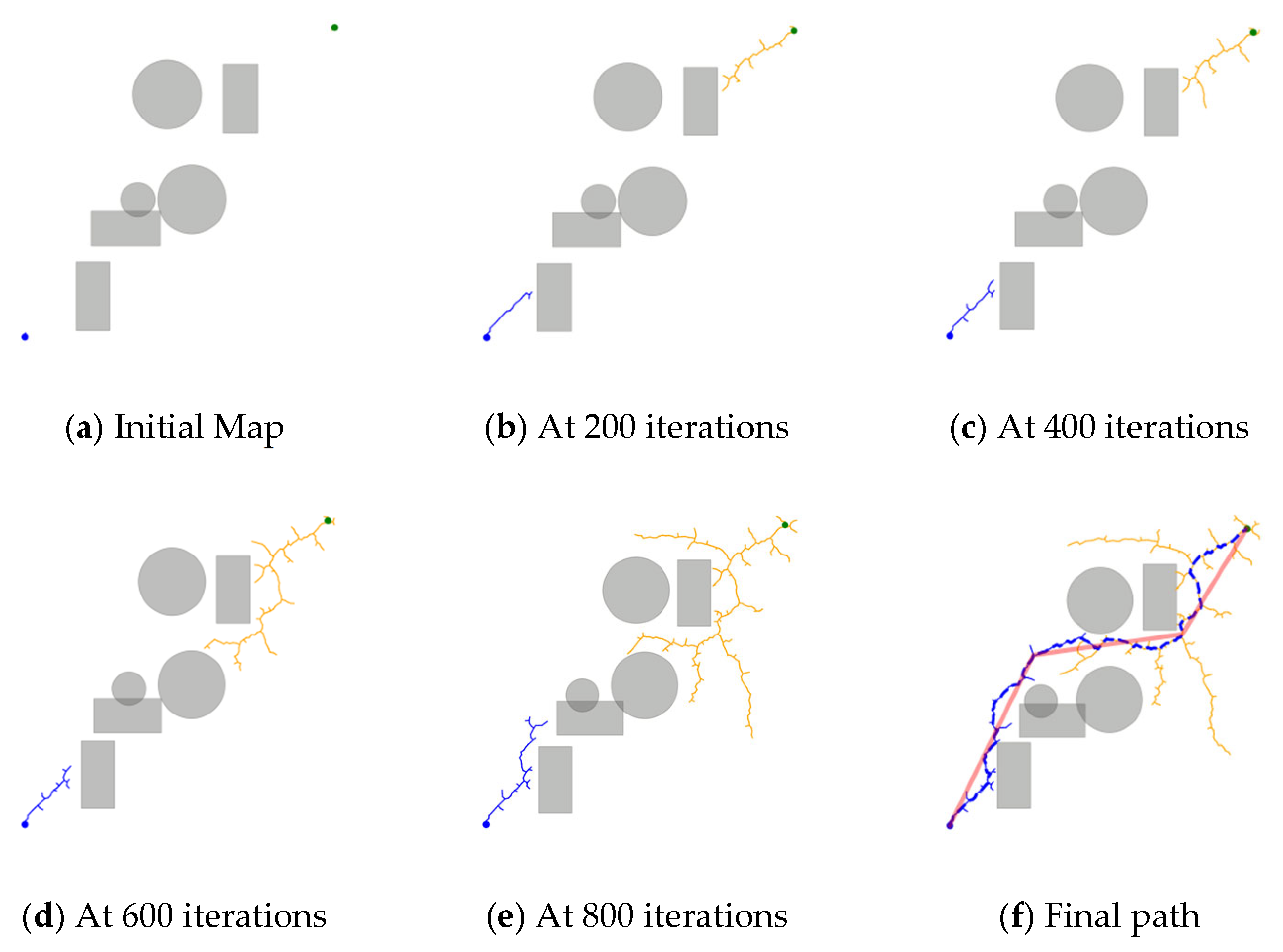 23. Liu, H.; Zhang, X.; Wen, J.; Wang, R.; Chen, X. Goal-biased bidirectional RRT based on curve-smoothing. IFAC-PapersOnLine 2019, 52, 255–260. [Google Scholar] [CrossRef]