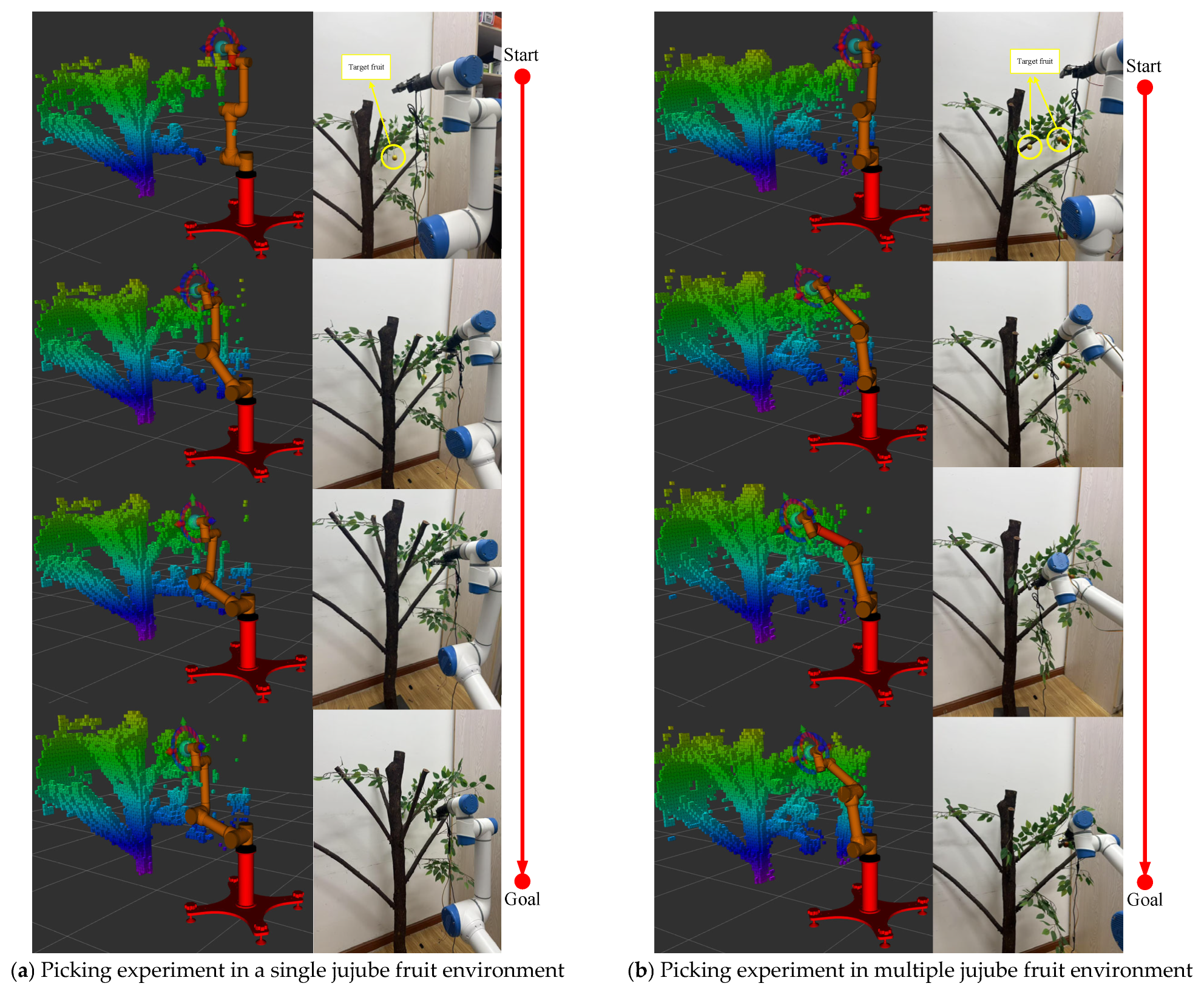 27. Huang, A.; Yu, C.; Feng, J.; Tong, X.; Yorozu, A.; Ohya, A.; Hu, Y. A motion planning method for winter jujube harvesting robotic arm based on optimized Informed-RRT* algorithm. Smart Agric. Technol. 2025, 10, 100732. [Google Scholar] [CrossRef]