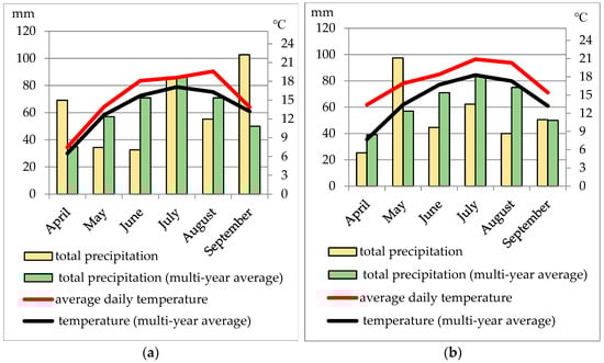 The characteristics of thermal and precipitation conditions in the two analyzed growing seasons were described using Selianinov’s Hydrothermal Coefficient [17], also known as the water security coefficient or conventional moisture balance (Table 2). The index (k) defines the ratio of total precipitation to the sum of average daily air temperatures in a given period.