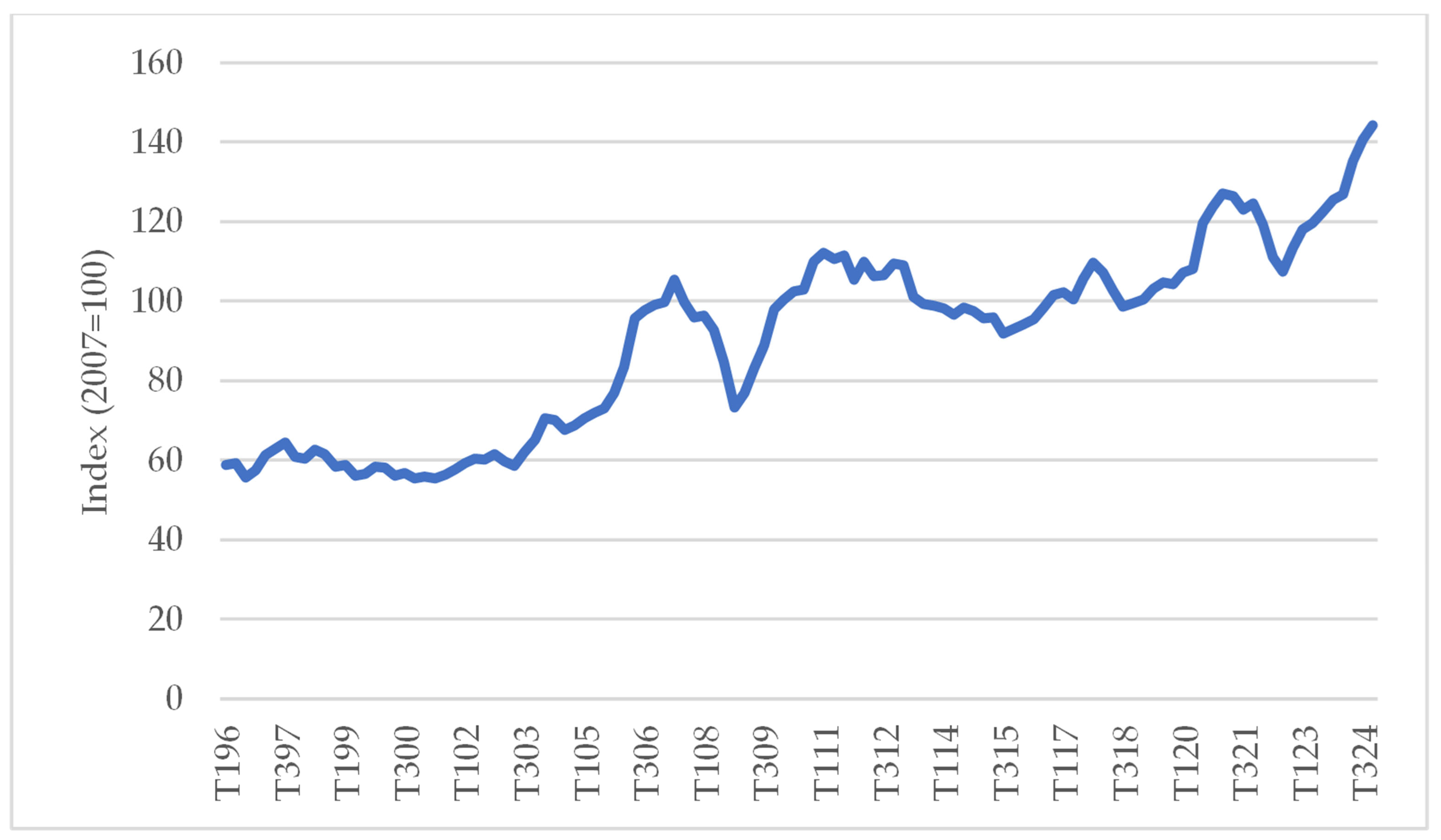 57]. These findings support the use of a VECM to capture the interaction between external price cycles and sectoral output when homogeneous, continuous control-variable series are not available.