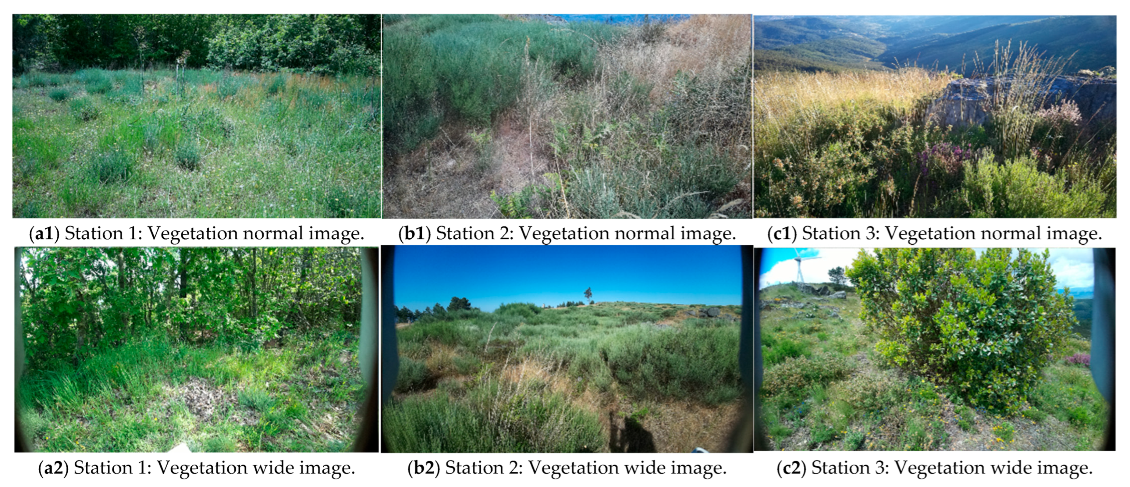 35]. Over the 365-day monitoring period, Station 3 captured 710/730 images (≈97% uptime), including during the wildfire period. Station 1 captured 680/730 (≈93% uptime), with gaps attributed mainly to reduced insolation at the installation site. Station 2 captured 482/730 (≈66% uptime). This station experienced wildfire-related damage (localized enclosure breach and cable burn). These data provide quantitative availability information alongside the qualitative field observations.