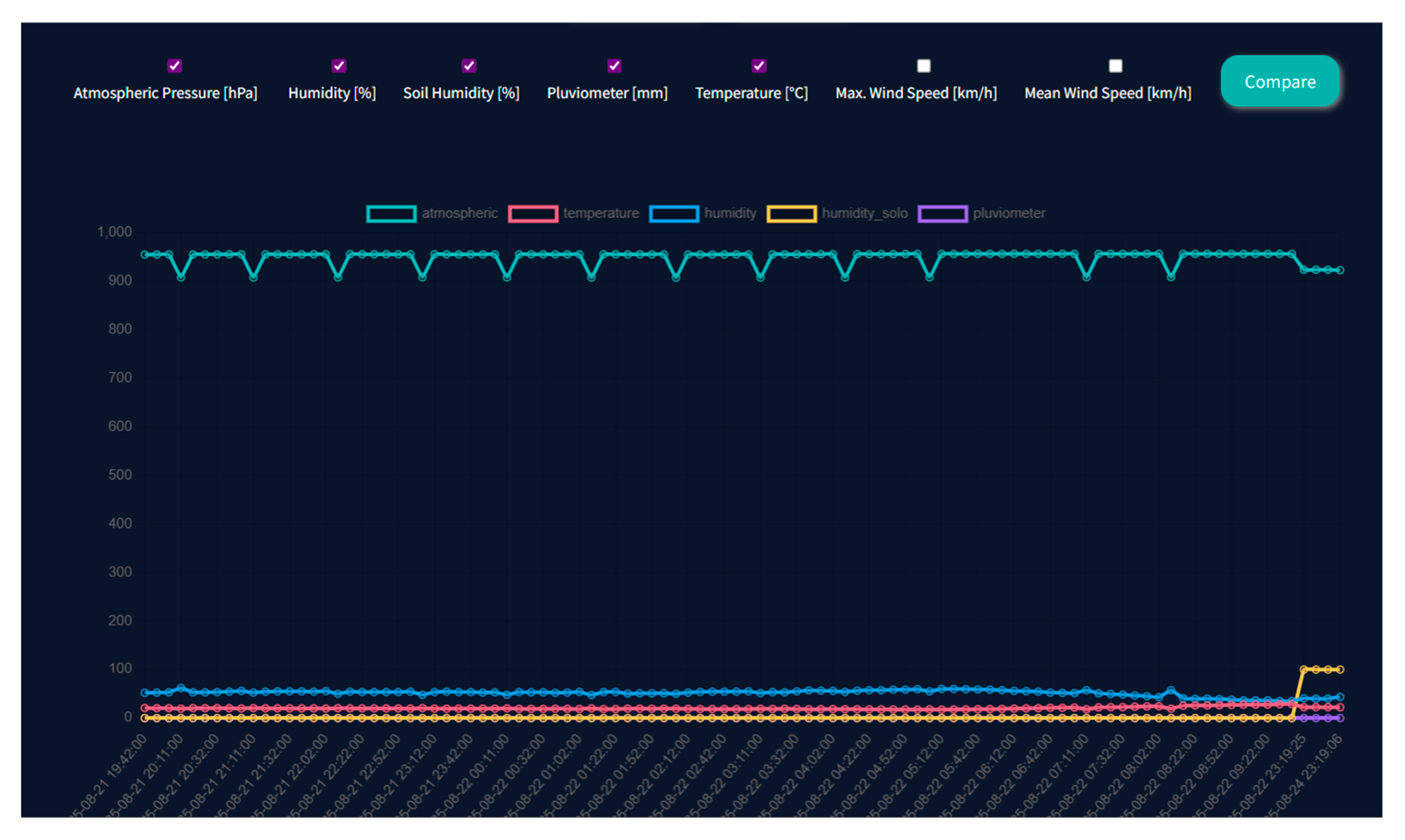 Figure 7, export the information in CSV files as well as the graphs themselves, and perform a comparative analysis between different parameters measured by the station’s sensors.