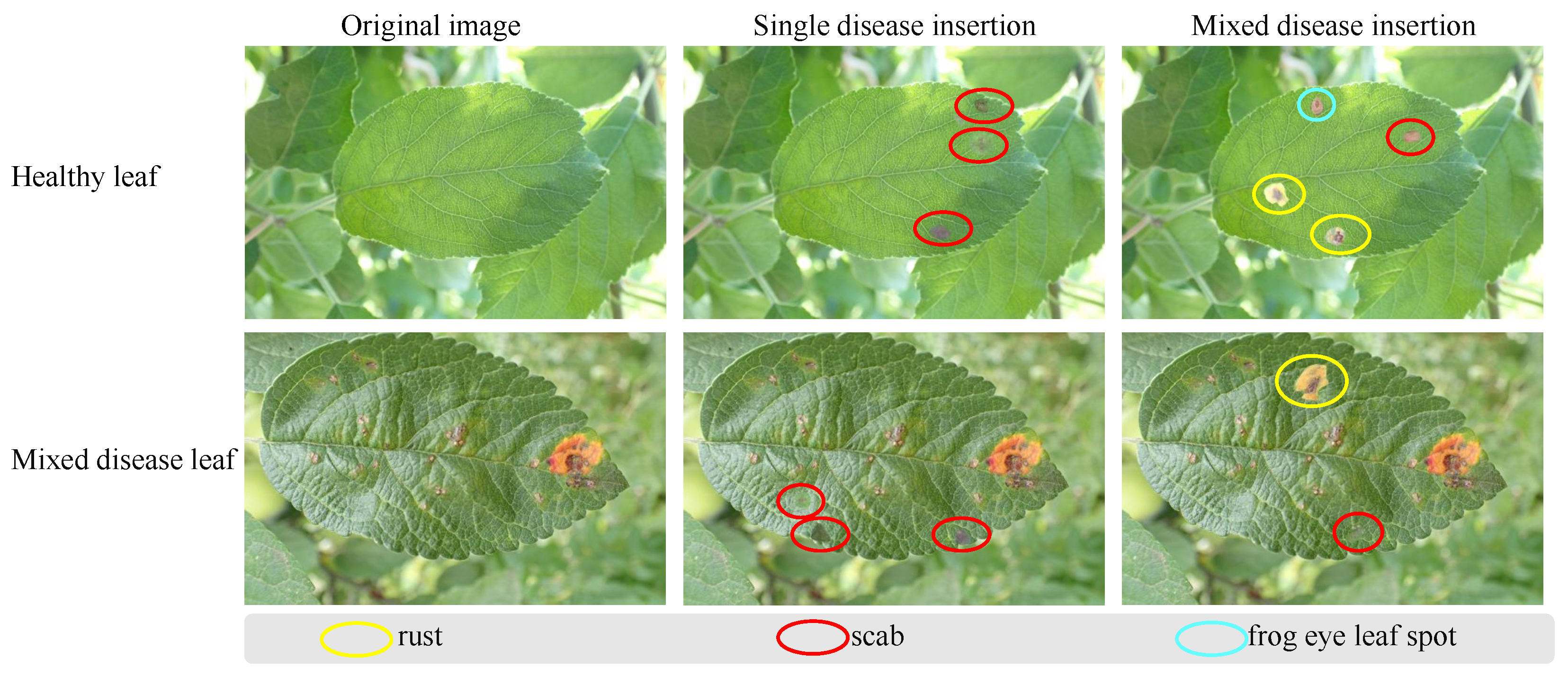 - Yang, Q.; Duan, S.; Wang, L. Efficient identification of apple leaf diseases in the wild using convolutional neural networks. Agronomy 2022, 12, 2784. [Google Scholar] [CrossRef]