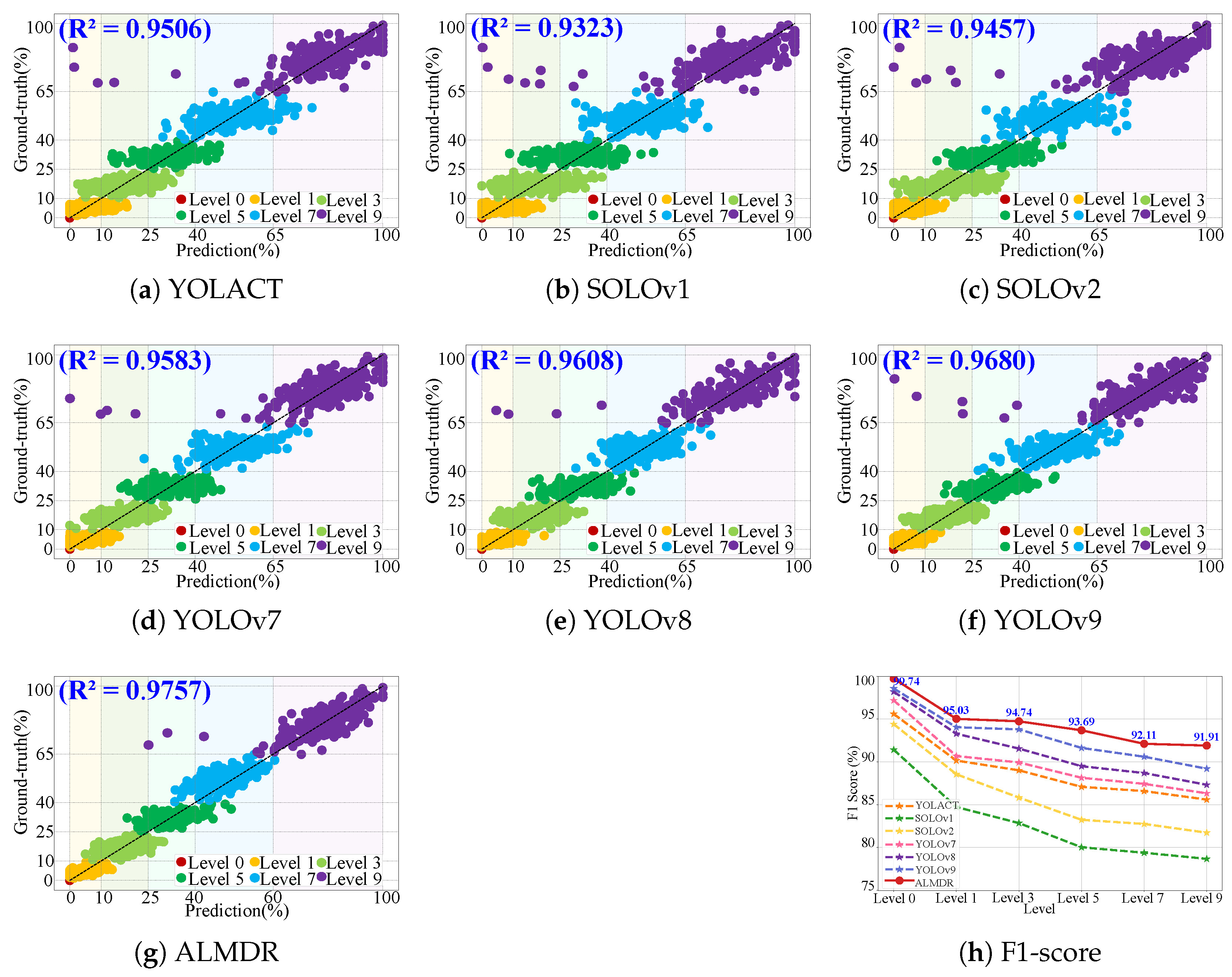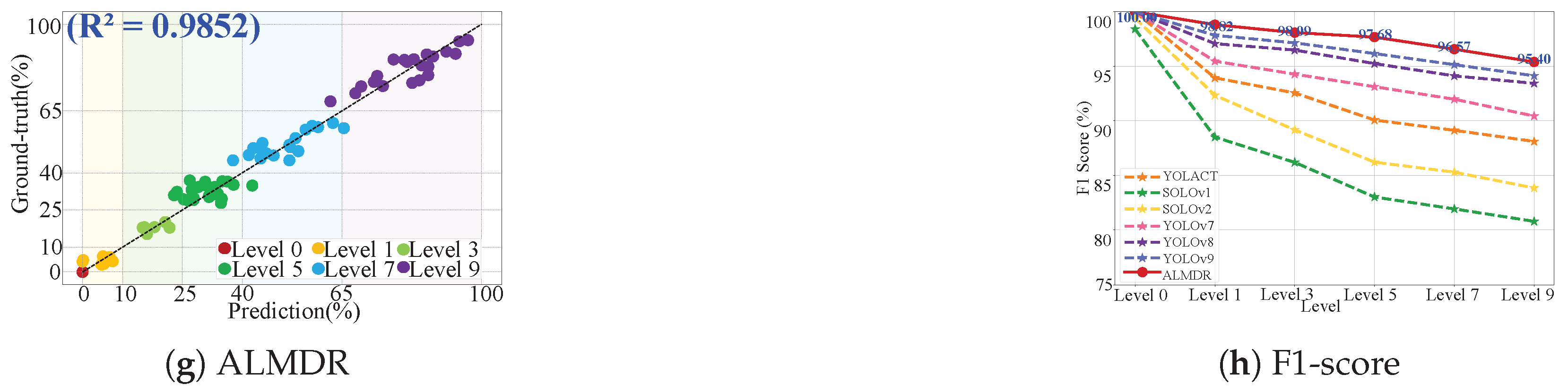 - Model efficiency metrics: To assess our ALMDR model’s efficiency, we use three metrics: FPS (frames per second), which measures real-time performance; FLOPs(G) (giga floating point operations per second), which indicates computational complexity; and parameters (in millions), which reflects storage requirements. These metrics collectively evaluate the model’s practicality for deployment and optimization.