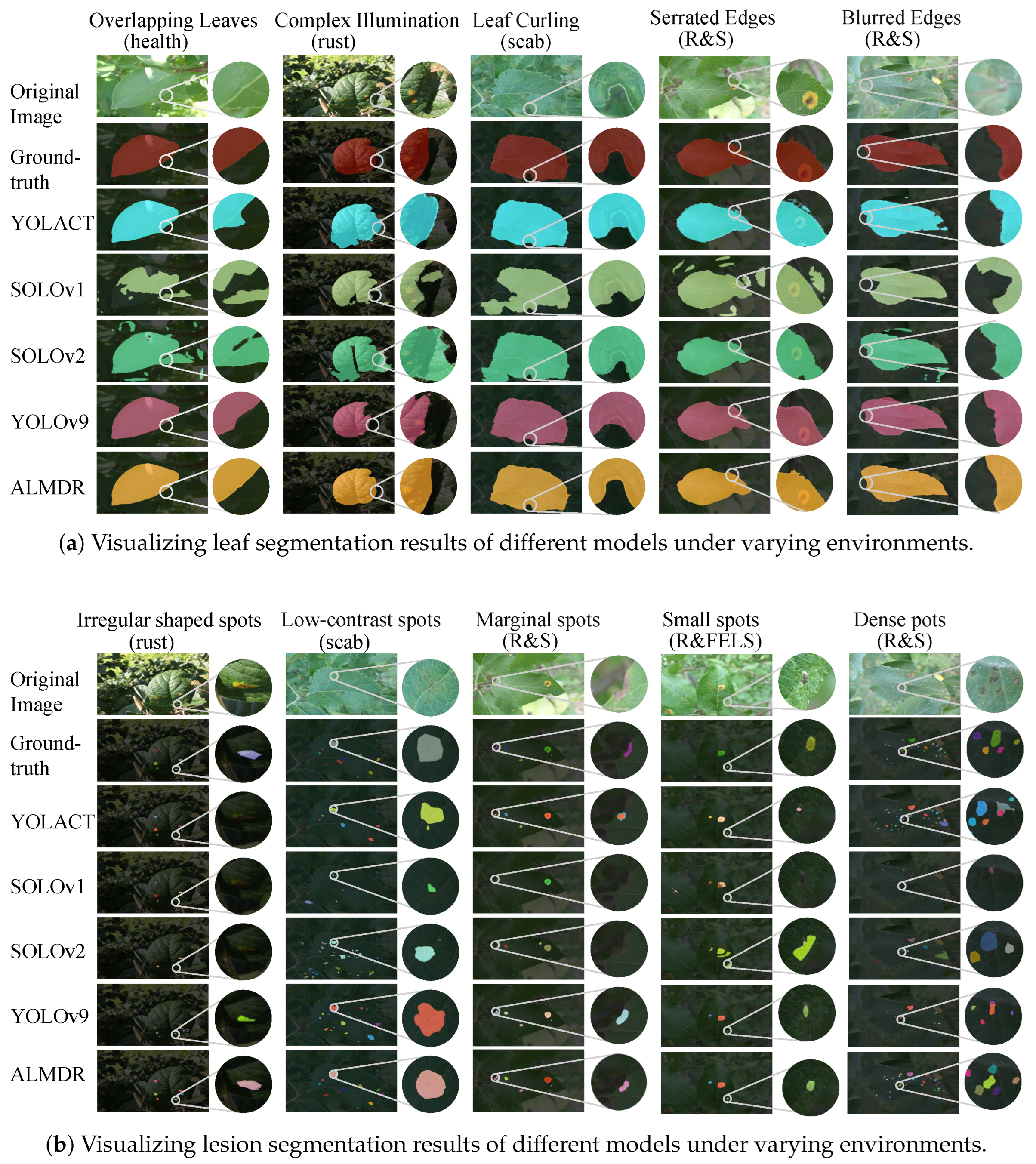 5.2. Visualization of Leaf and Lesion Segmentation Results Across Different Models