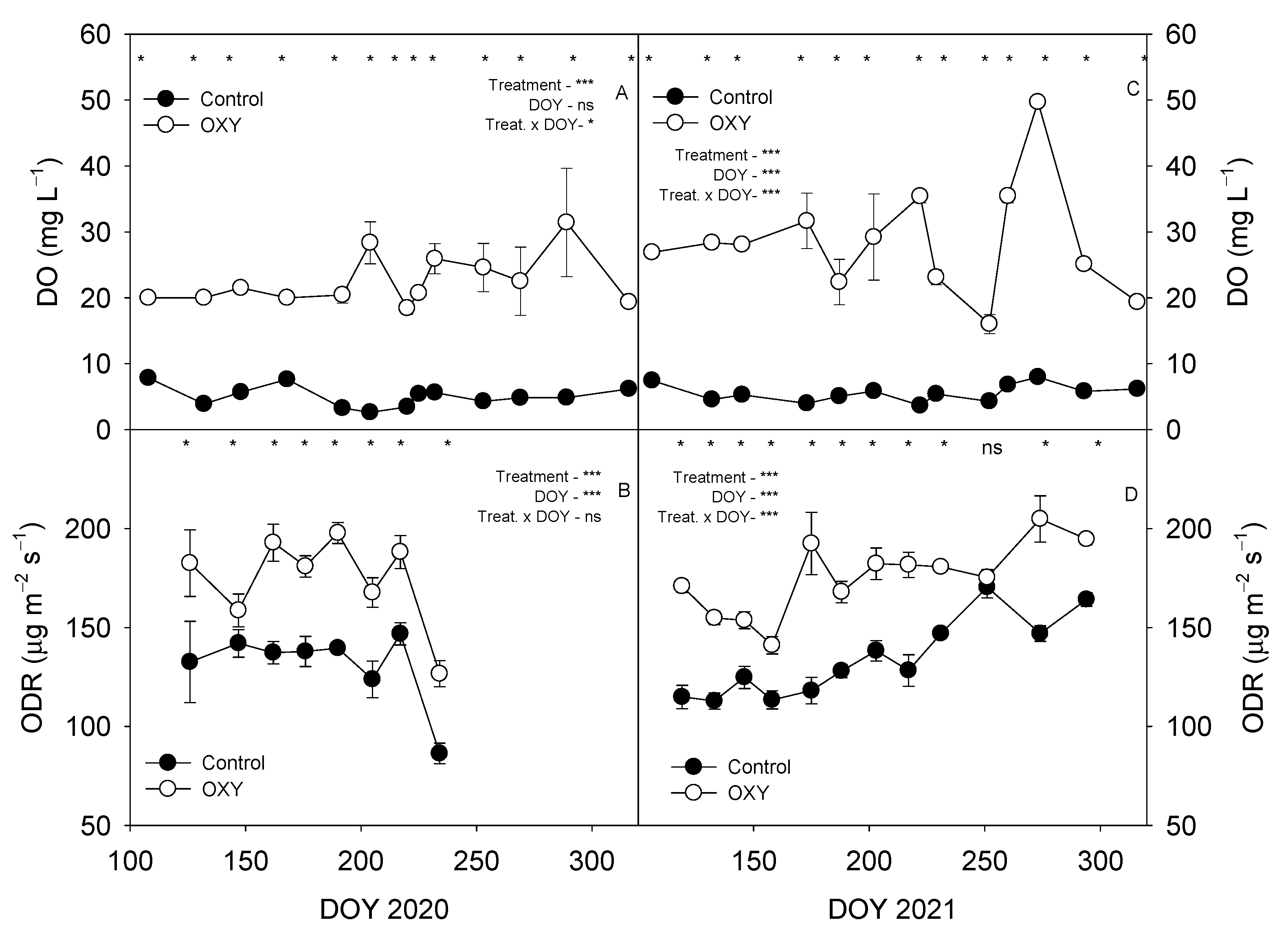 2.2.1. Dissolved Oxygen (DO) and Soil Oxygen Diffusion Rate (ODR)