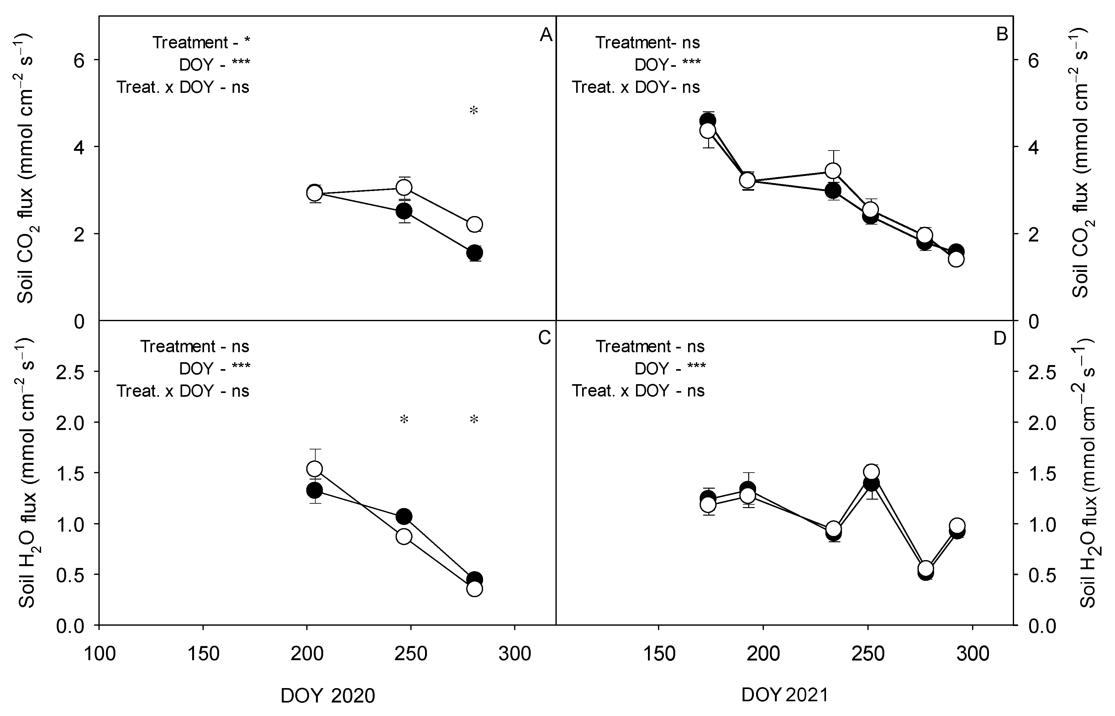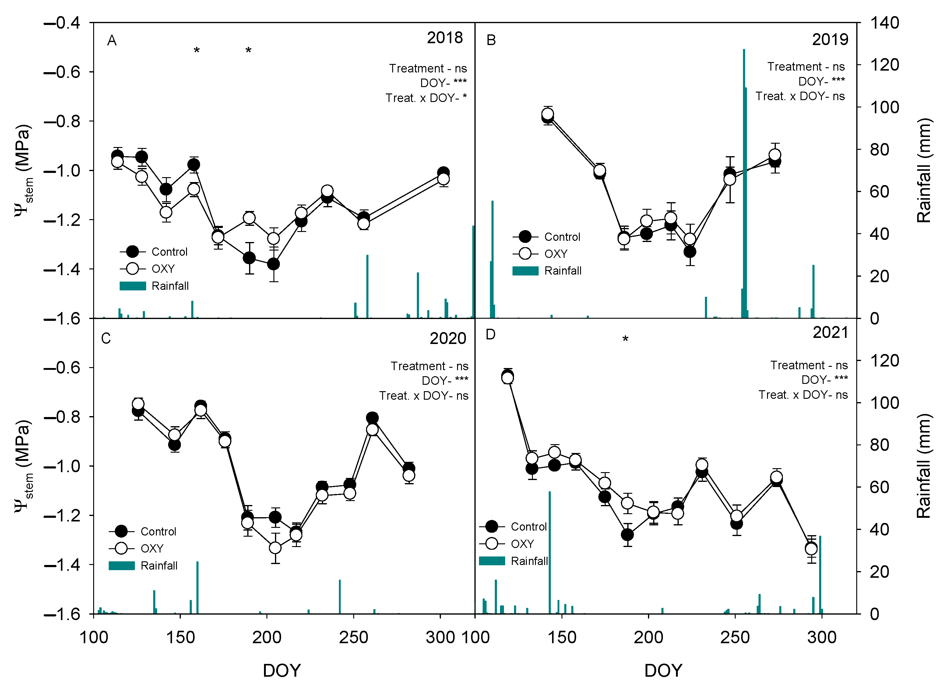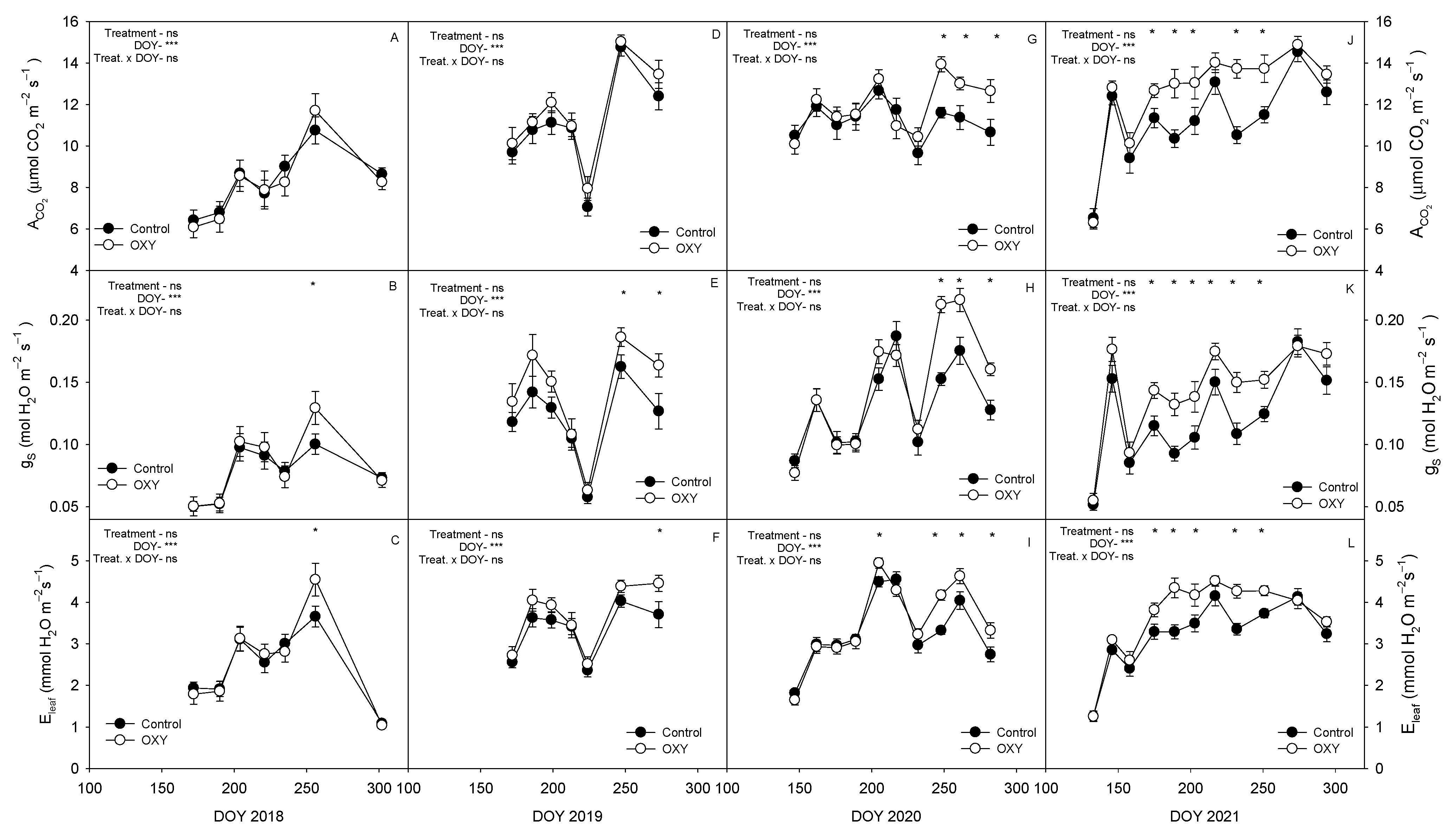 | Treatment × Year | ns | ns | ns | * | *** | ns | *** | * | ns | ns | |