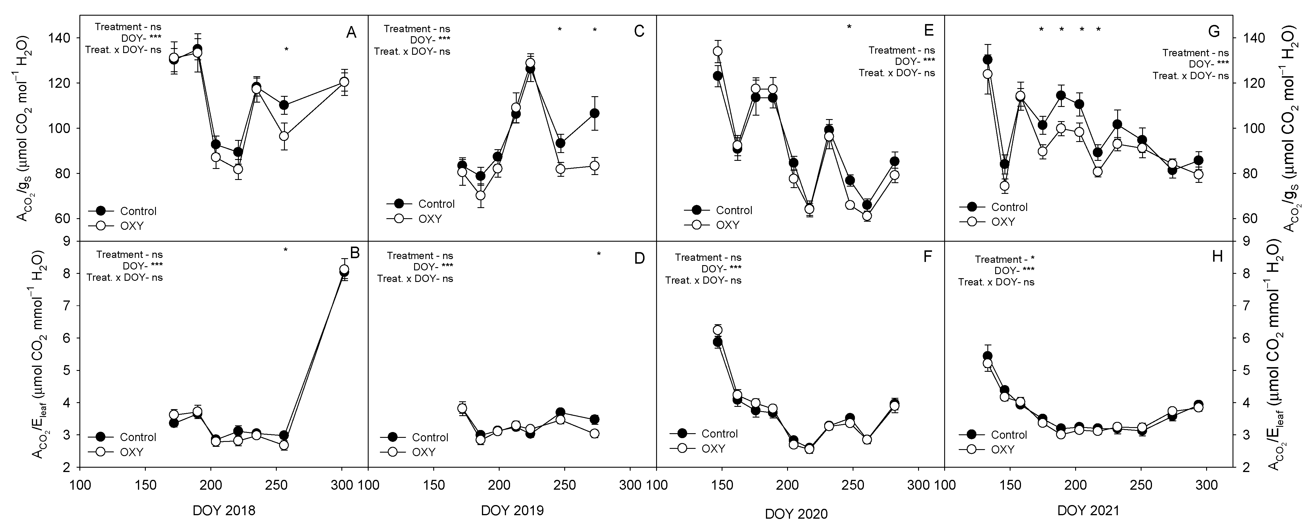 | ACO2/gs | Intrinsic leaf water use efficiency |