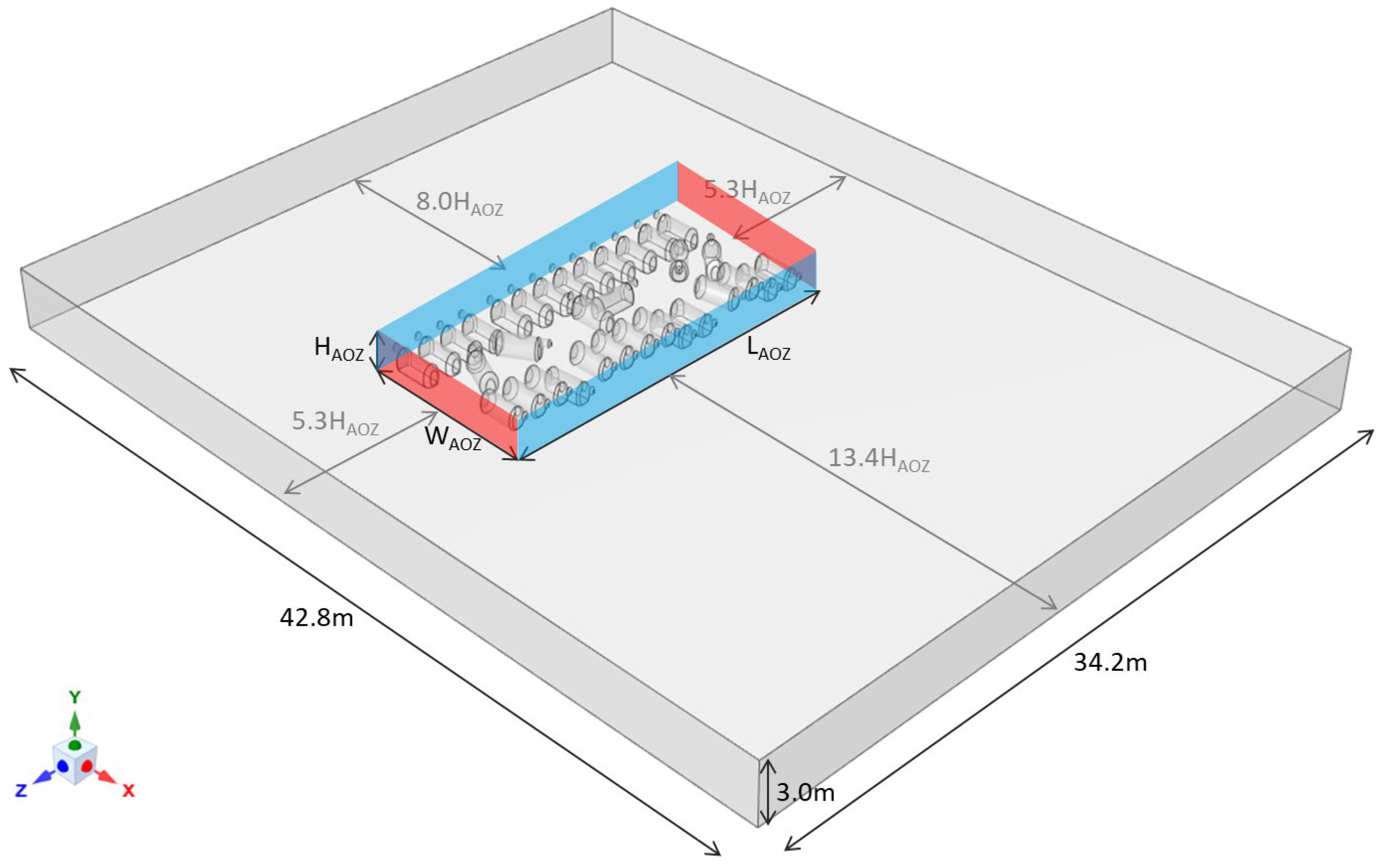 AOZ (i.e., 3 m) based on a preceding study that simulated the computational domain as a virtual wind tunnel with the height of 3 m [