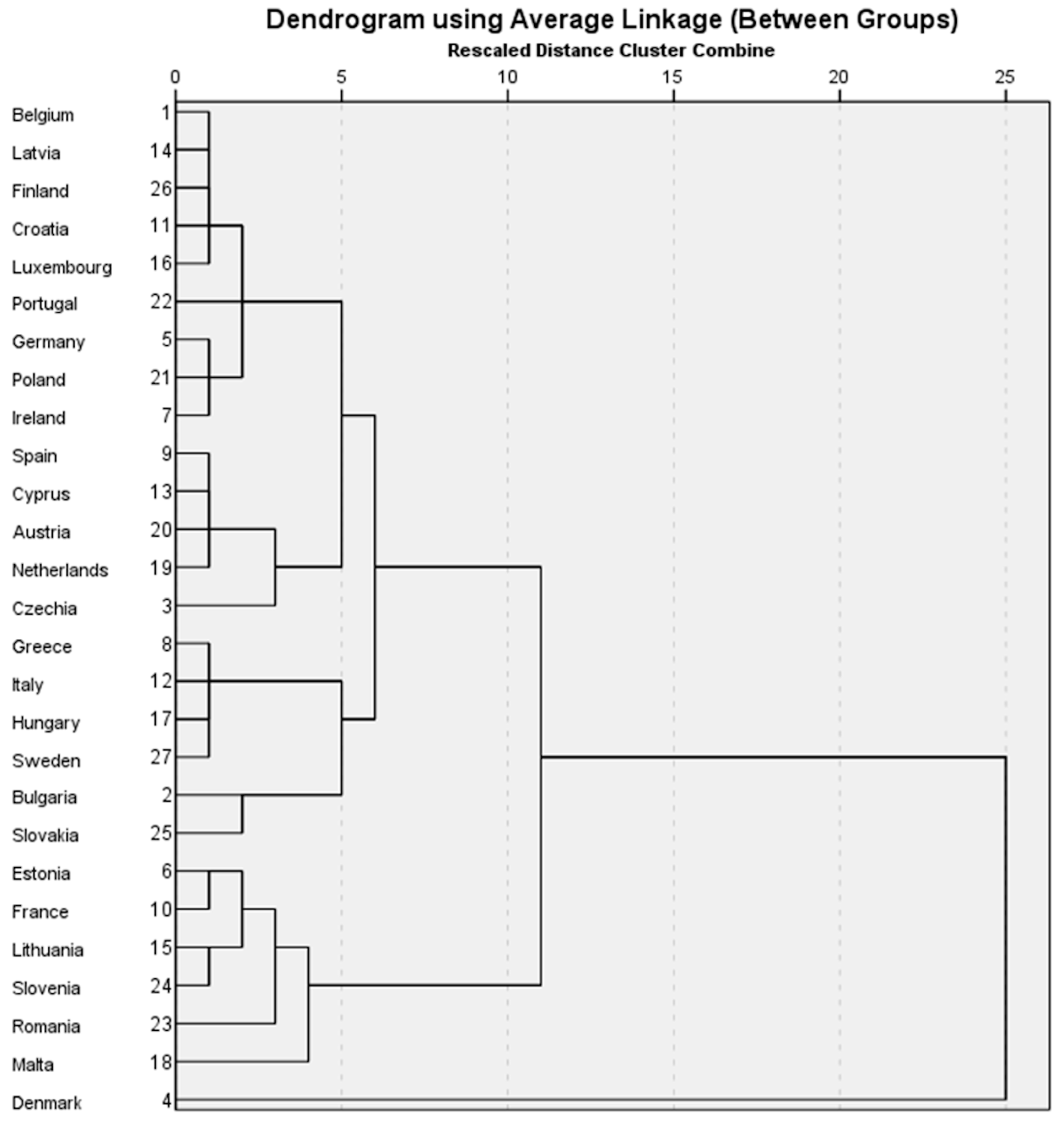 The cluster analysis reveals not only structural heterogeneity among European agricultural systems but also systematic differences in countries’ ability to translate agricultural price dynamics into economic performance. The identified clusters, therefore, reflect distinct positions within the EU agricultural market, separating countries that benefit from price movements from those that remain structurally disadvantaged.