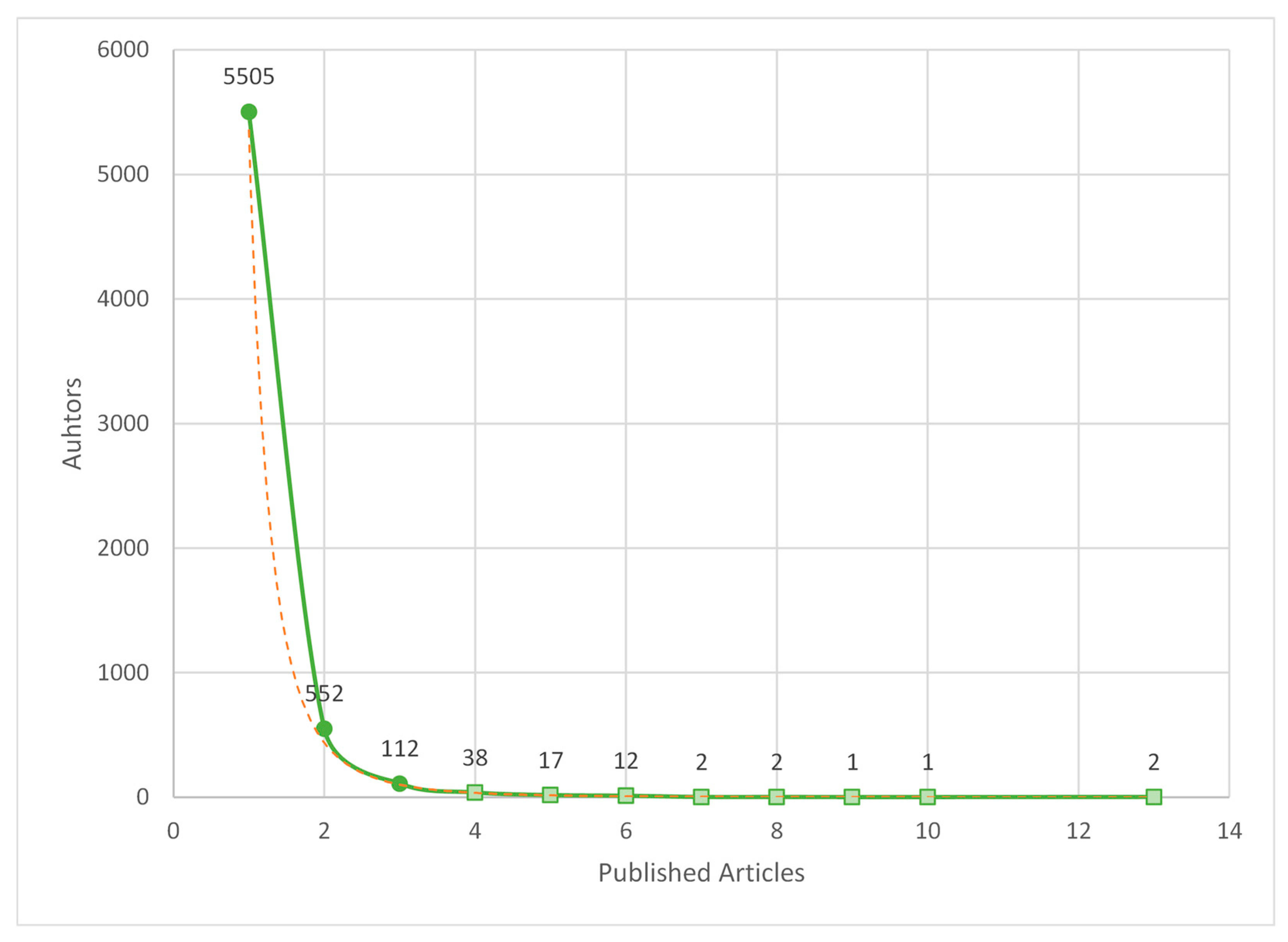 | Authors identified | 6244 | Researchers | Lotka’s Law |