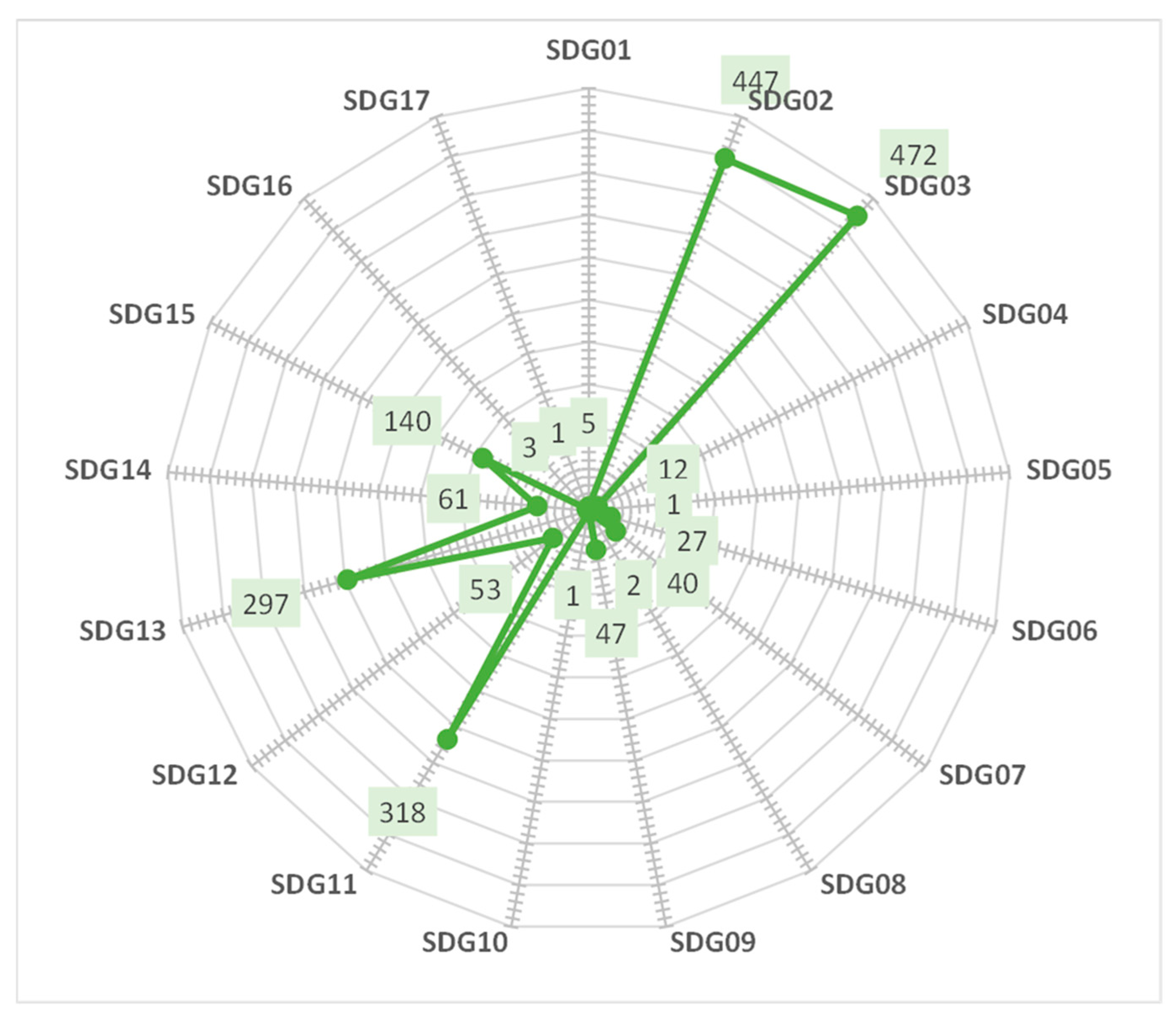 | SDG 2 | 447 | SDG 11 | 318 |