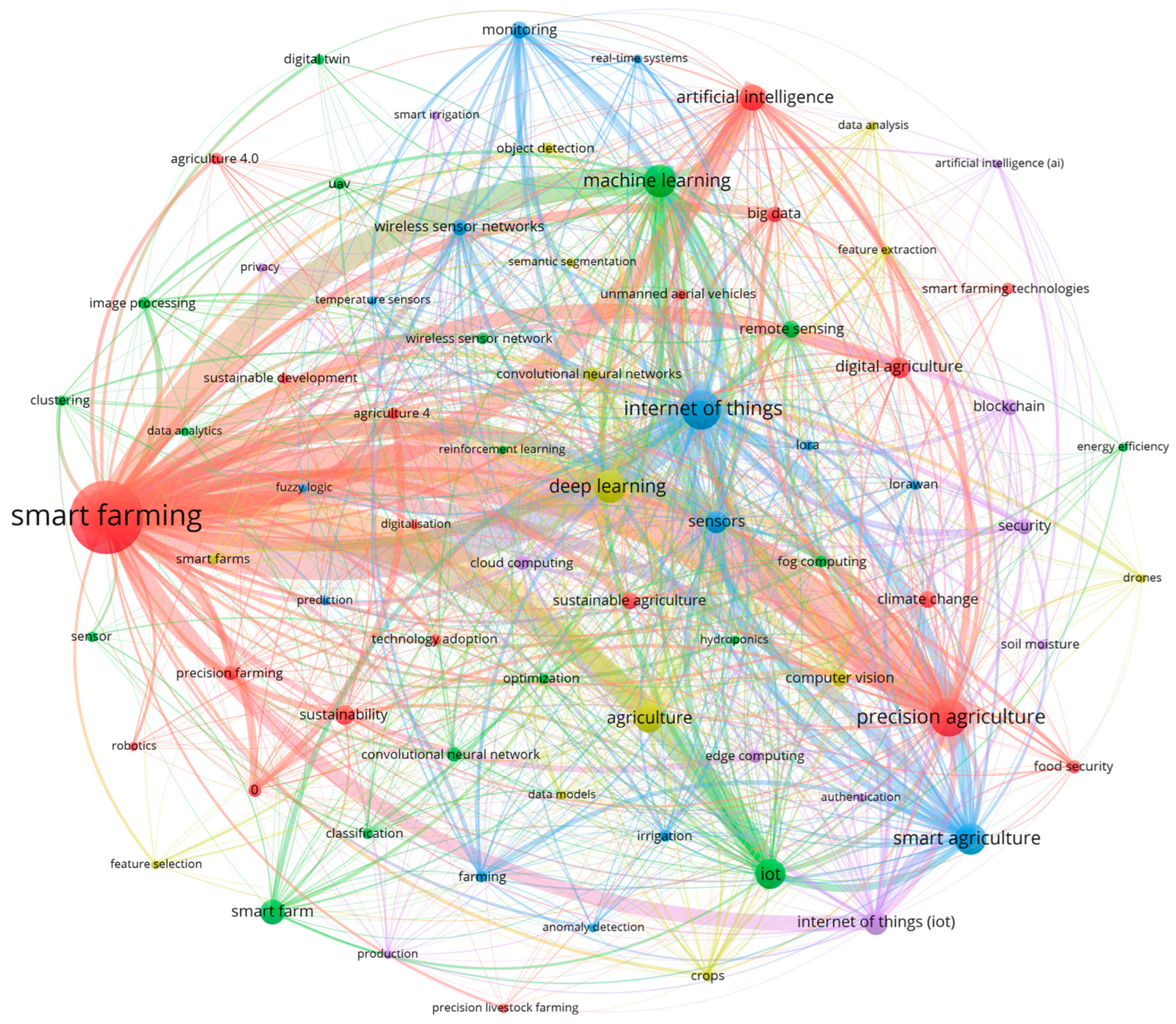 - SDG 2: Zero Hunger (447 articles), demonstrating Smart Farming’s contribution to productivity, food security, and agricultural sustainability.