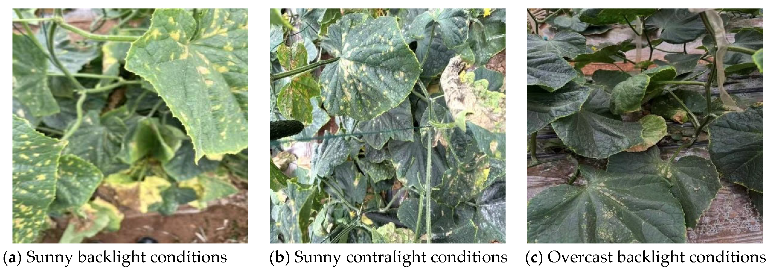 - Yao, H.; Wang, C.; Zhang, L.; Li, J.; Liu, B.; Liang, F. A cucumber leaf disease severity grading method in natural environment based on the fusion of TRNet and U-Net. Agronomy 2023, 14, 72. [Google Scholar] [CrossRef]
