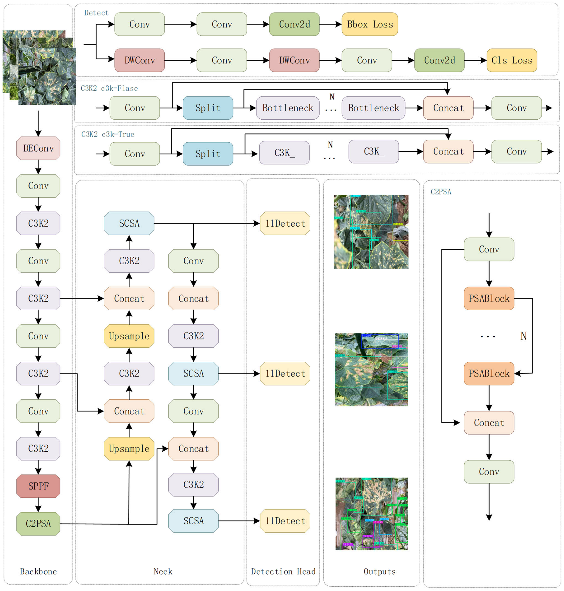 APA StyleTang, X., Wang, P., Sun, Z., Liu, Z., Tang, Y., Shi, J., Ma, L., & Zhang, Y. (2026). YOLOv11n-DSU: A Study on Grading and Detection of Multiple Cucumber Diseases in Complex Field Backgrounds. Agriculture, 16(2), 140. https://doi.org/10.3390/agriculture16020140