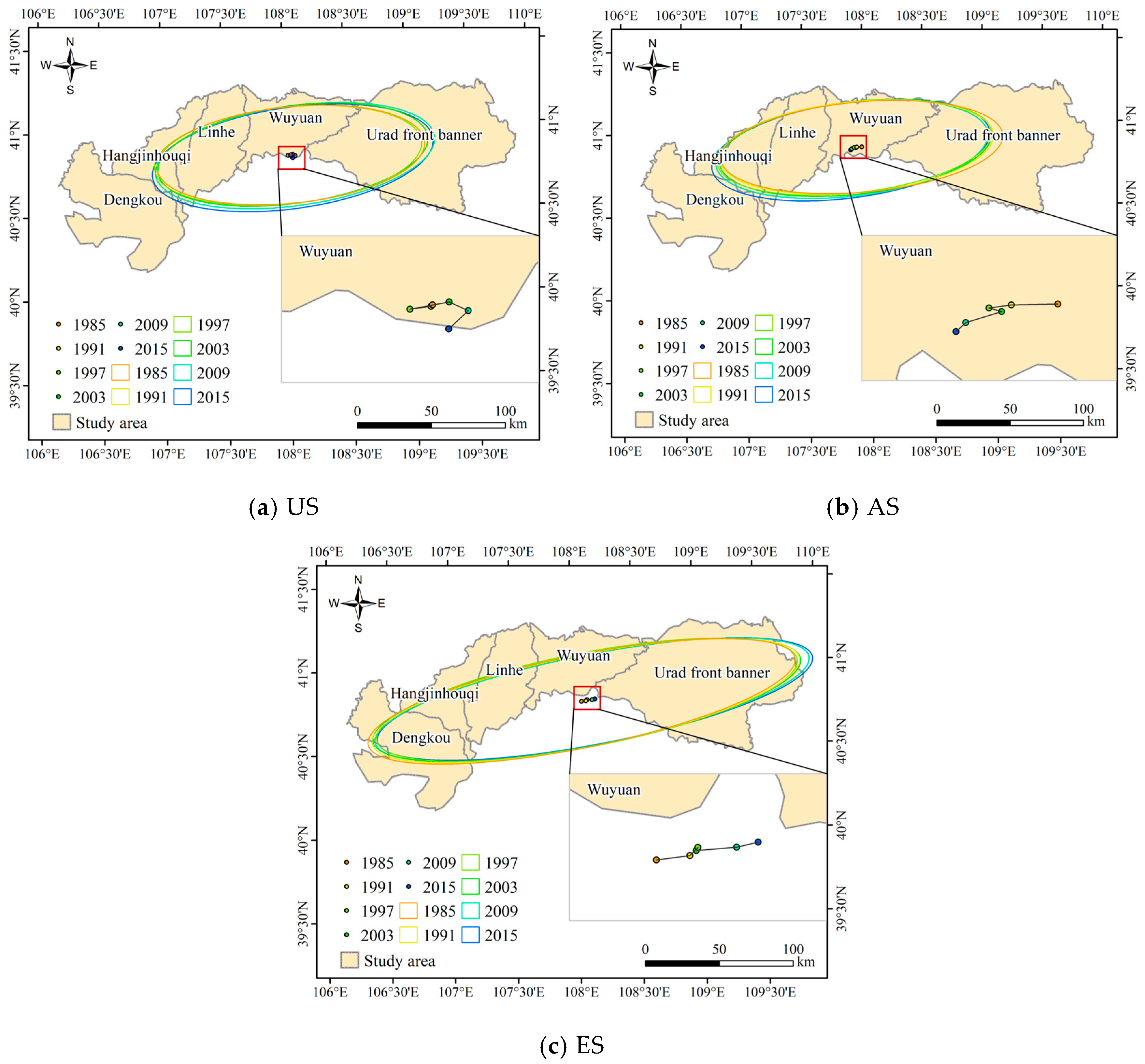 3.6. Analysis Method for the Evolution of Urban–Agricultural–Ecological Spatial Pattern