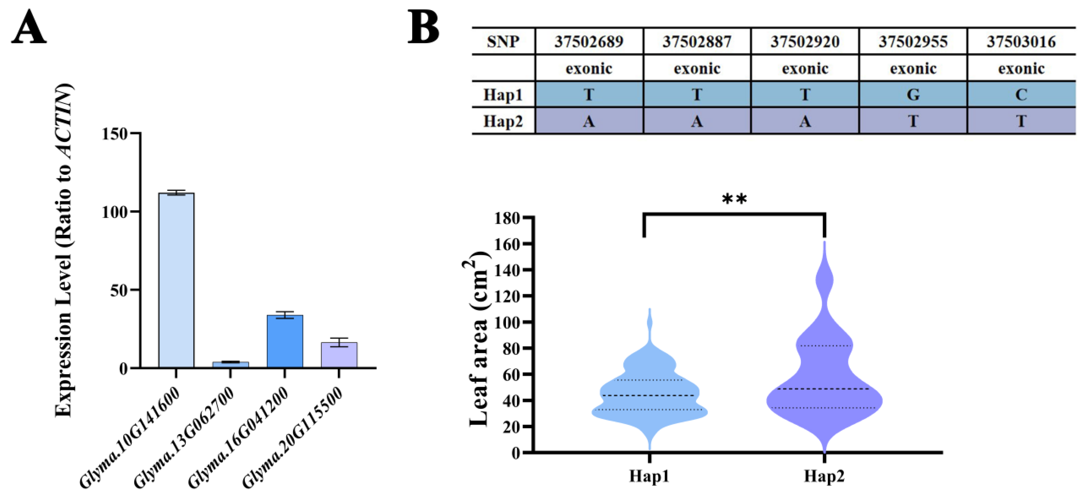 3.5. Screening of Superior Haplotypes Related to Soybean Leaf Shape