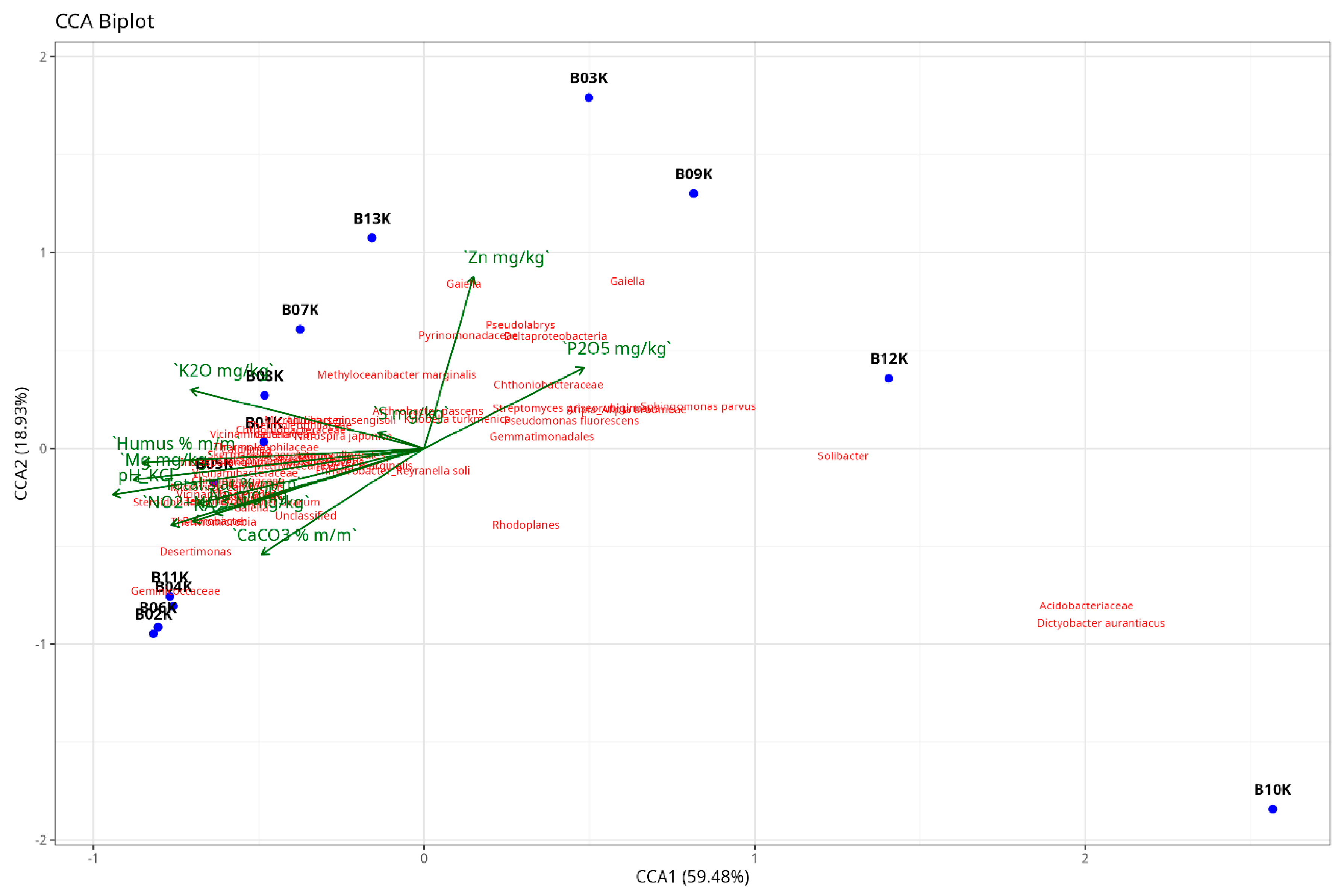 - Clay soils (B04, B05, B06, B07, B08, B11) were characterized by the abundance of taxa such as Actinomycetia, Skermanella, Rubrobacter, Terrimicrobium, Thermomicrobia, PAC001874_g belonging to Vicinamibacteraceae, Microvirga, EF125410_g belonging to Geminicoccaceae, Desertimonas, and PAC001932_g belonging to Chitinophagaceae. These genera were largely absent in sandy soils but were present in steppe MZs (B01 and B13), which had intermediate textures and organic matter content.