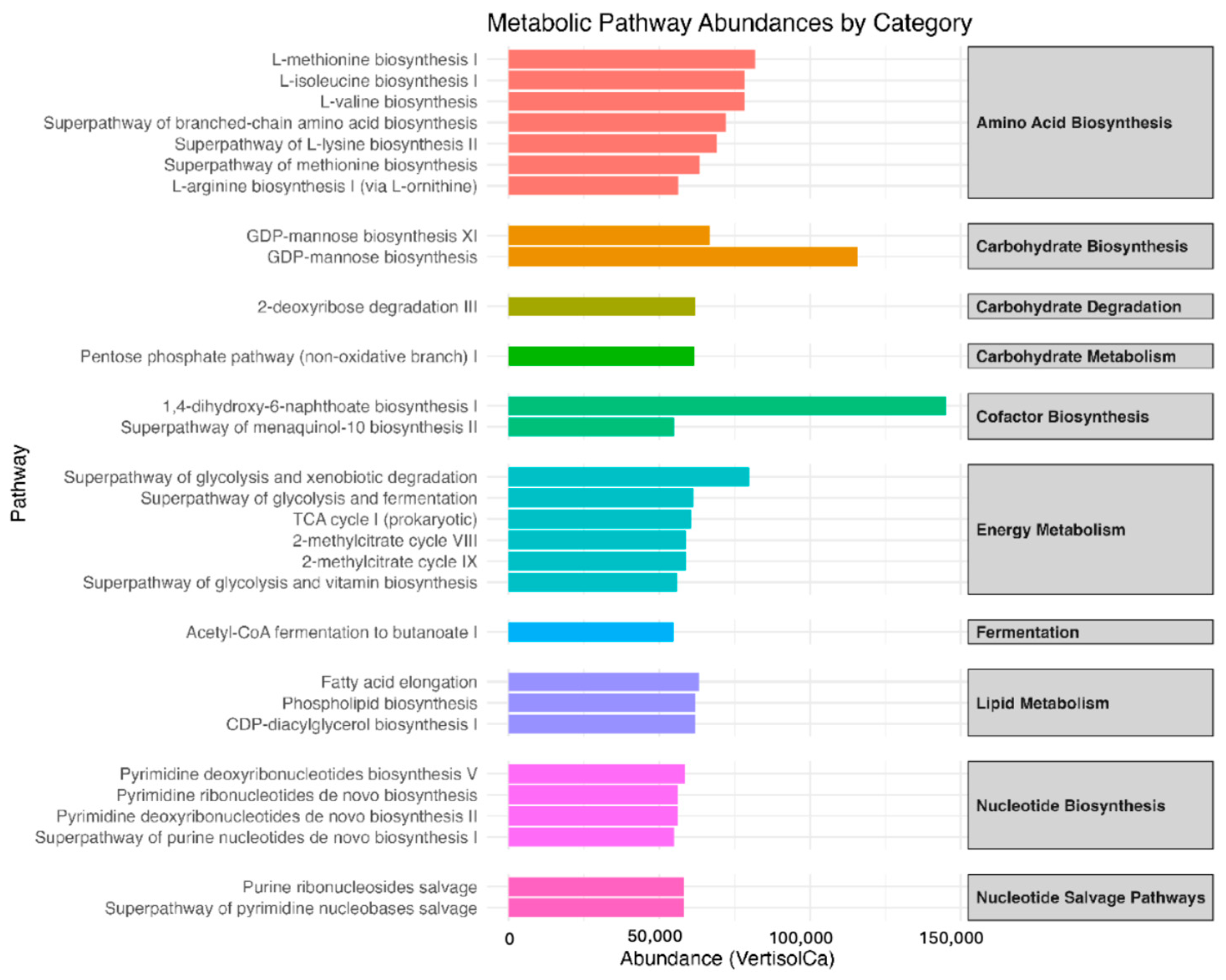 3.3.2. Comparison of the Enzymatic Pathways According to the Amplicon Results Evaluated by KEGG Orthology