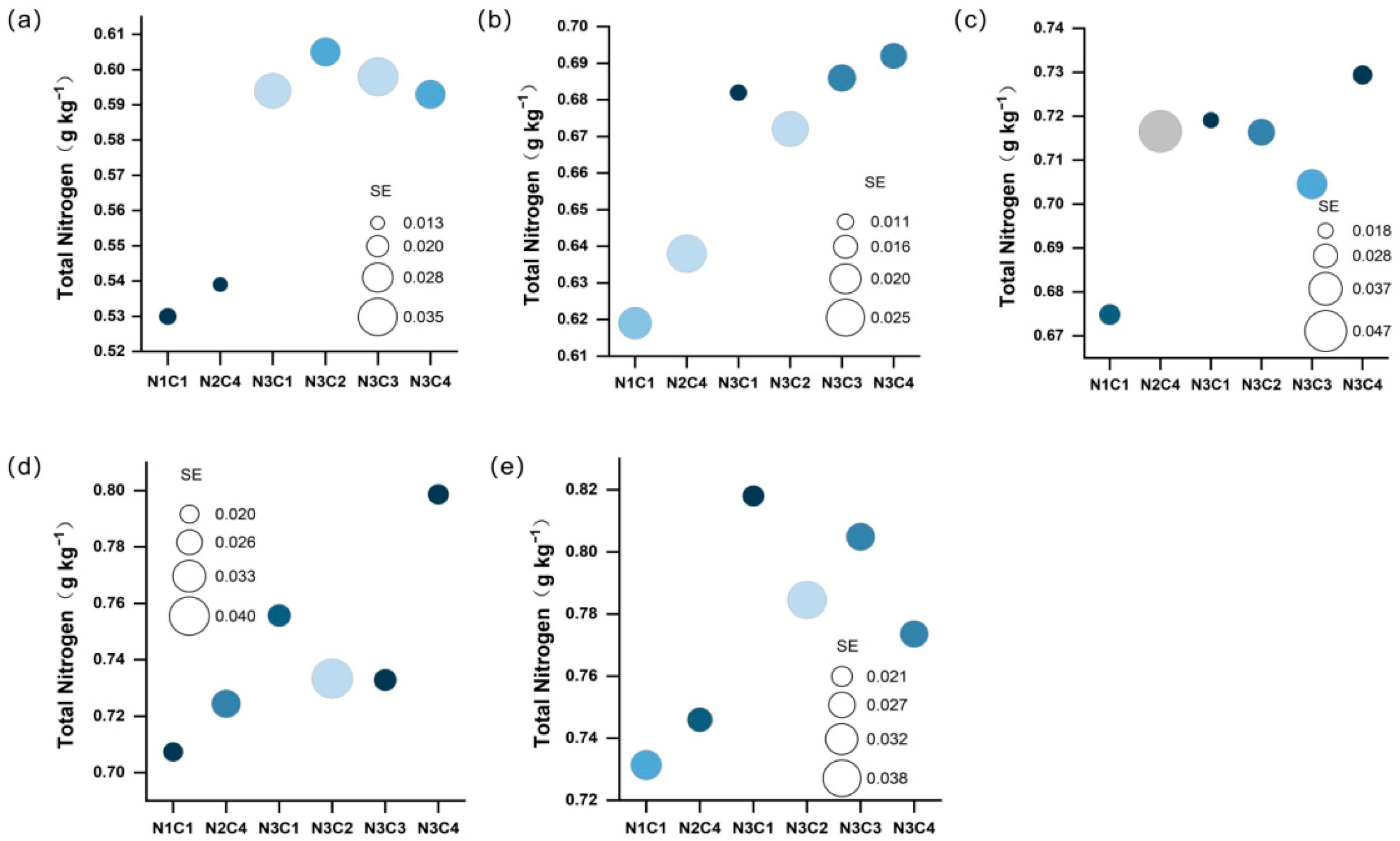 3.1.2. Comparison of Soil Total Nitrogen Content