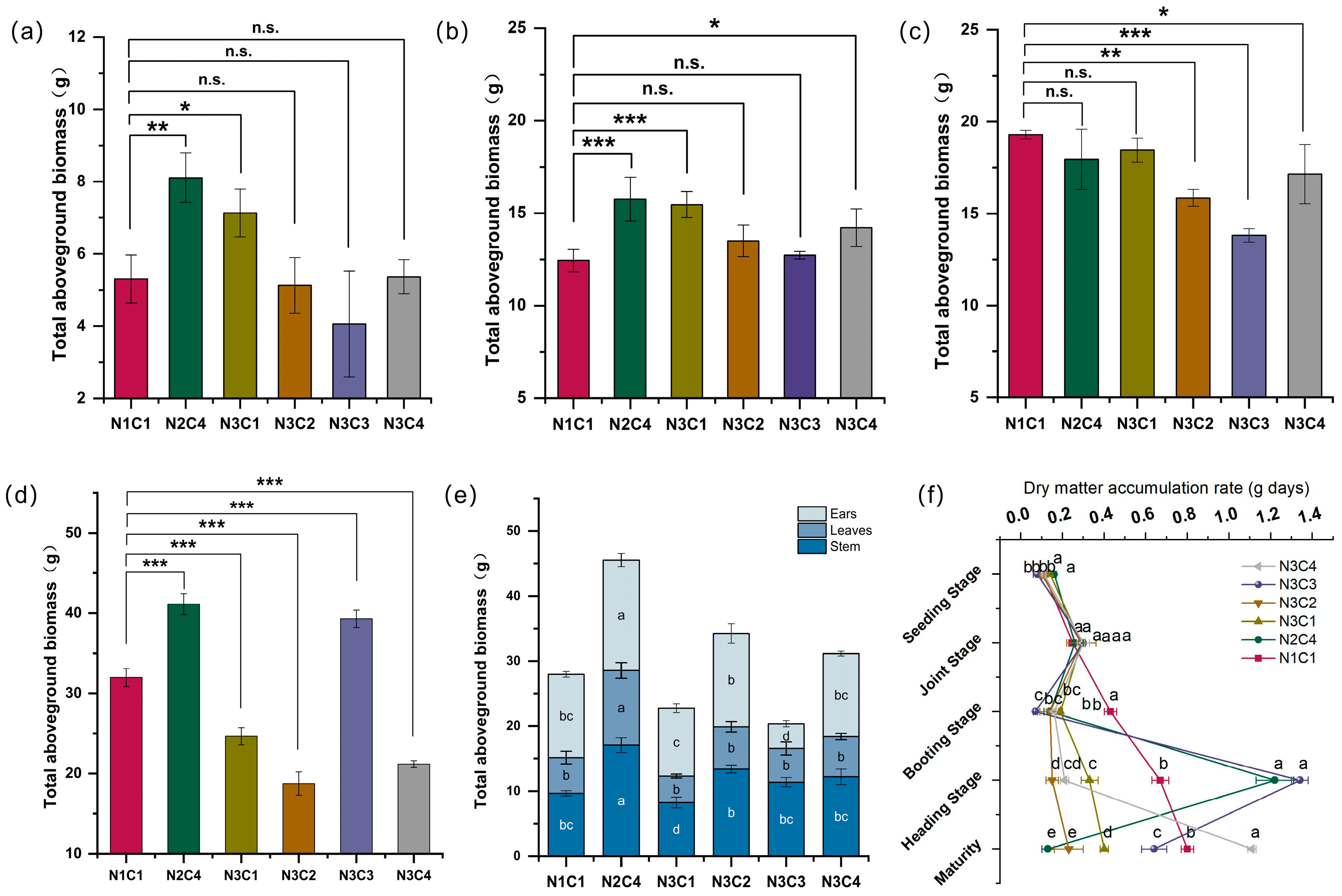 2.3.1. Above-Ground Biomass and Dry Matter Accumulation Rate