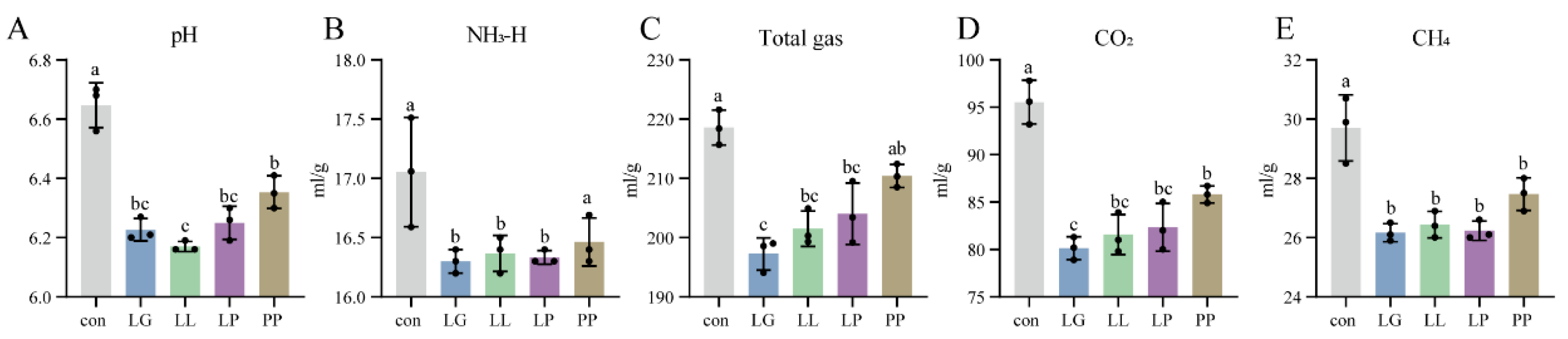 | LL | 11.39 aA | 8.01 bAB | 6.46 cA | 4.61 dA | 4.15 deAB | 3.51 eAB | |||||