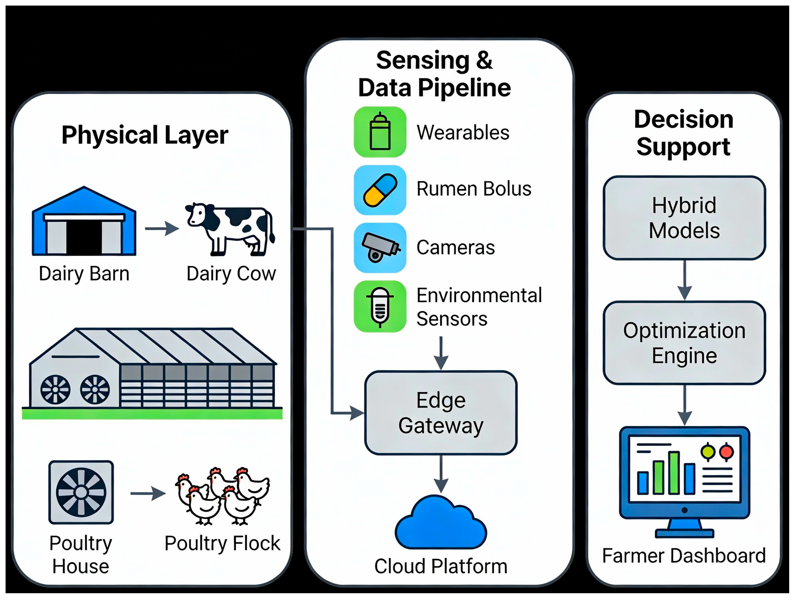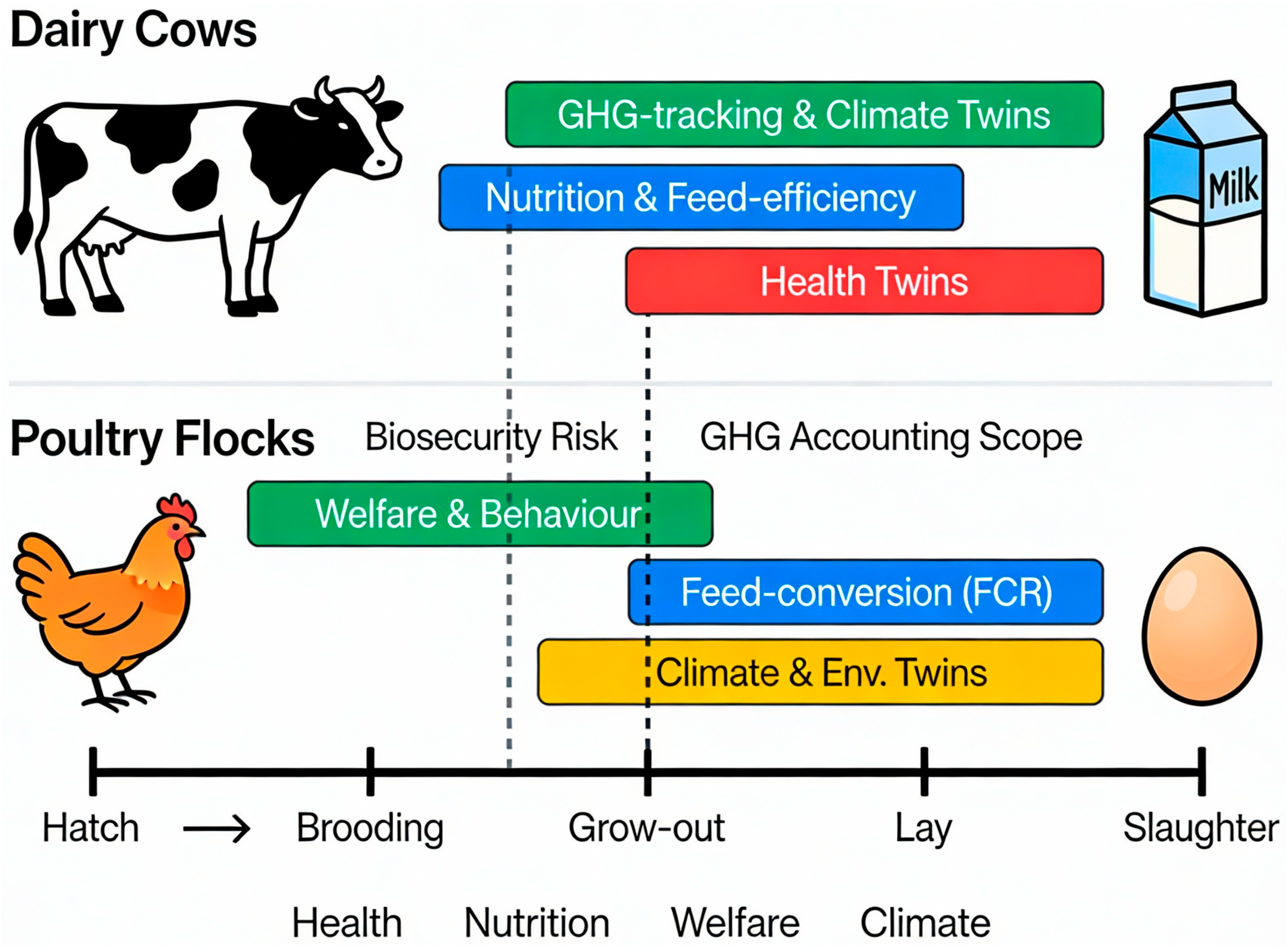 Figure 1) with concrete examples from dairy and poultry systems [