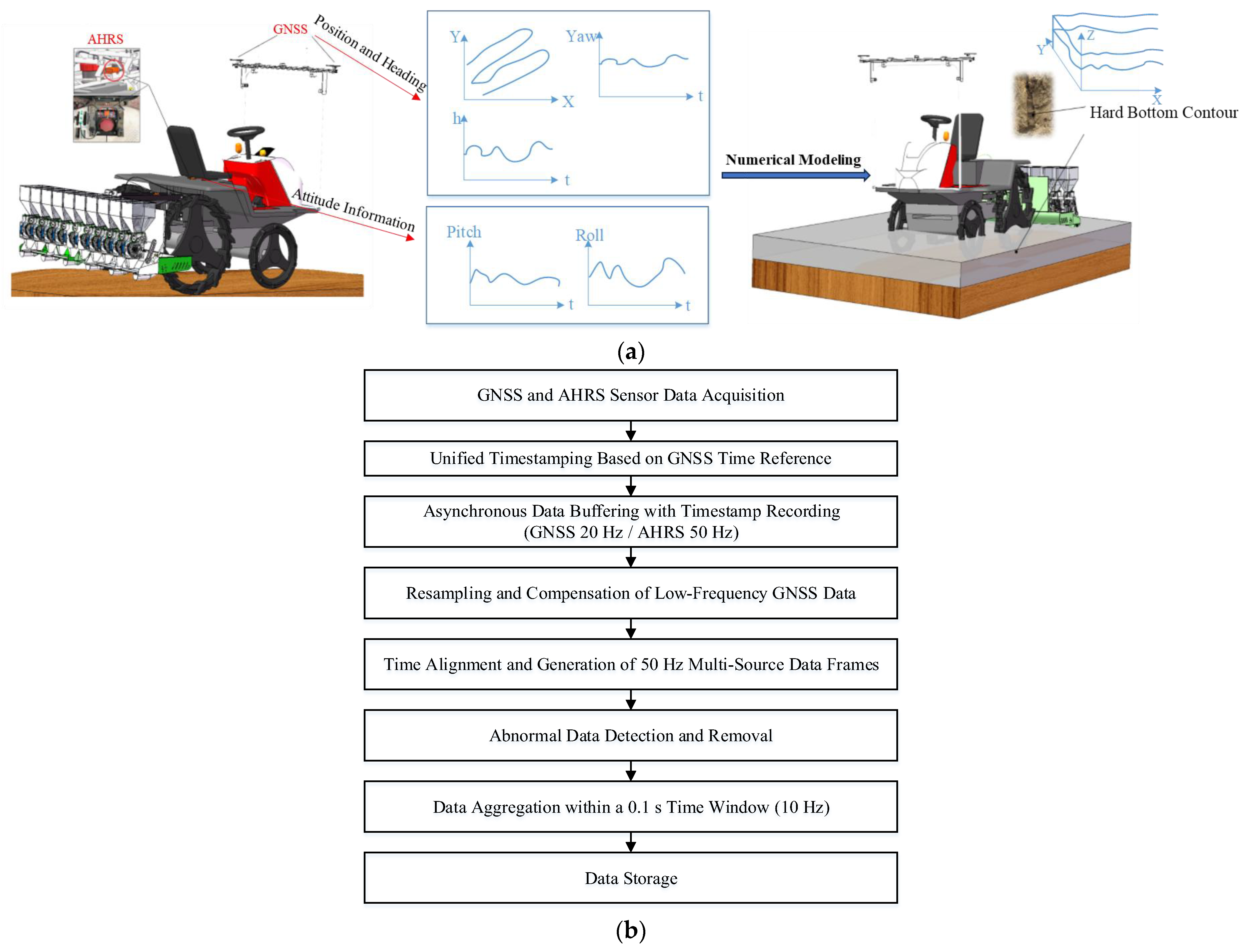 2.1. Platform for Collecting Position and Attitude Information of Agricultural Machinery and Hard Bottom Contour Data