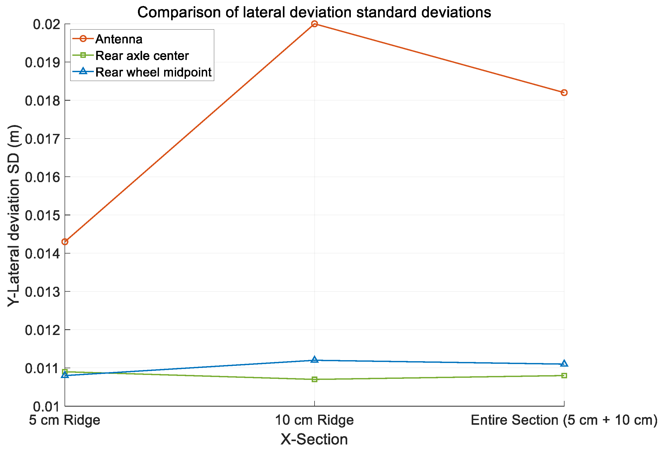 | Section | Antenna Lateral Deviation SD (m) | Rear Axle Center Lateral Deviation SD (m) | Rear Wheel Midpoint Lateral Deviation SD (m) |