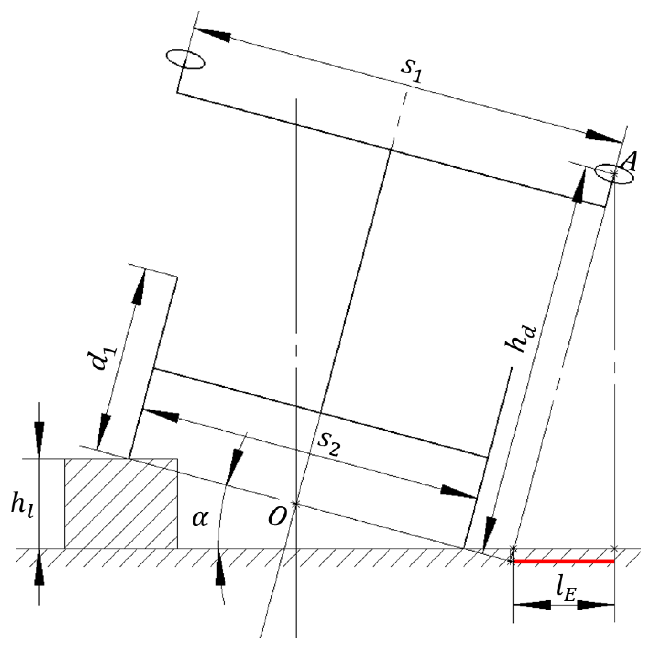 Due to the rotational relationship between the bottom of wheel and wheel hub, the effect of rotation on the bottom-of-wheel position must be considered. This involves analyzing the change in coordinate increments of the bottom of the wheel within the vehicle body coordinate system during body pitch. The positional relationship during body pitch is illustrated in