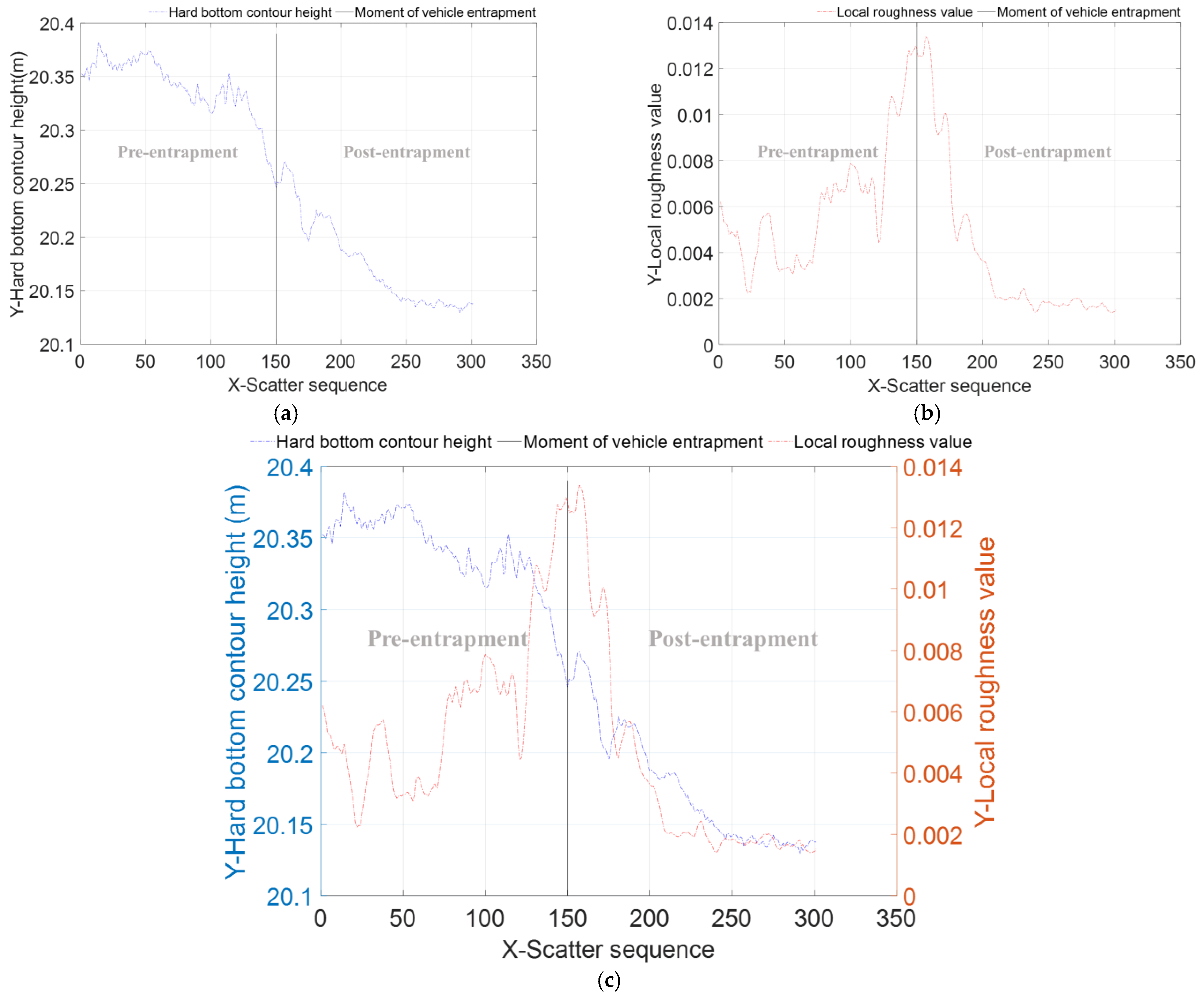 Surface points of the hard bottom layer 15 s before and after vehicle trapping.