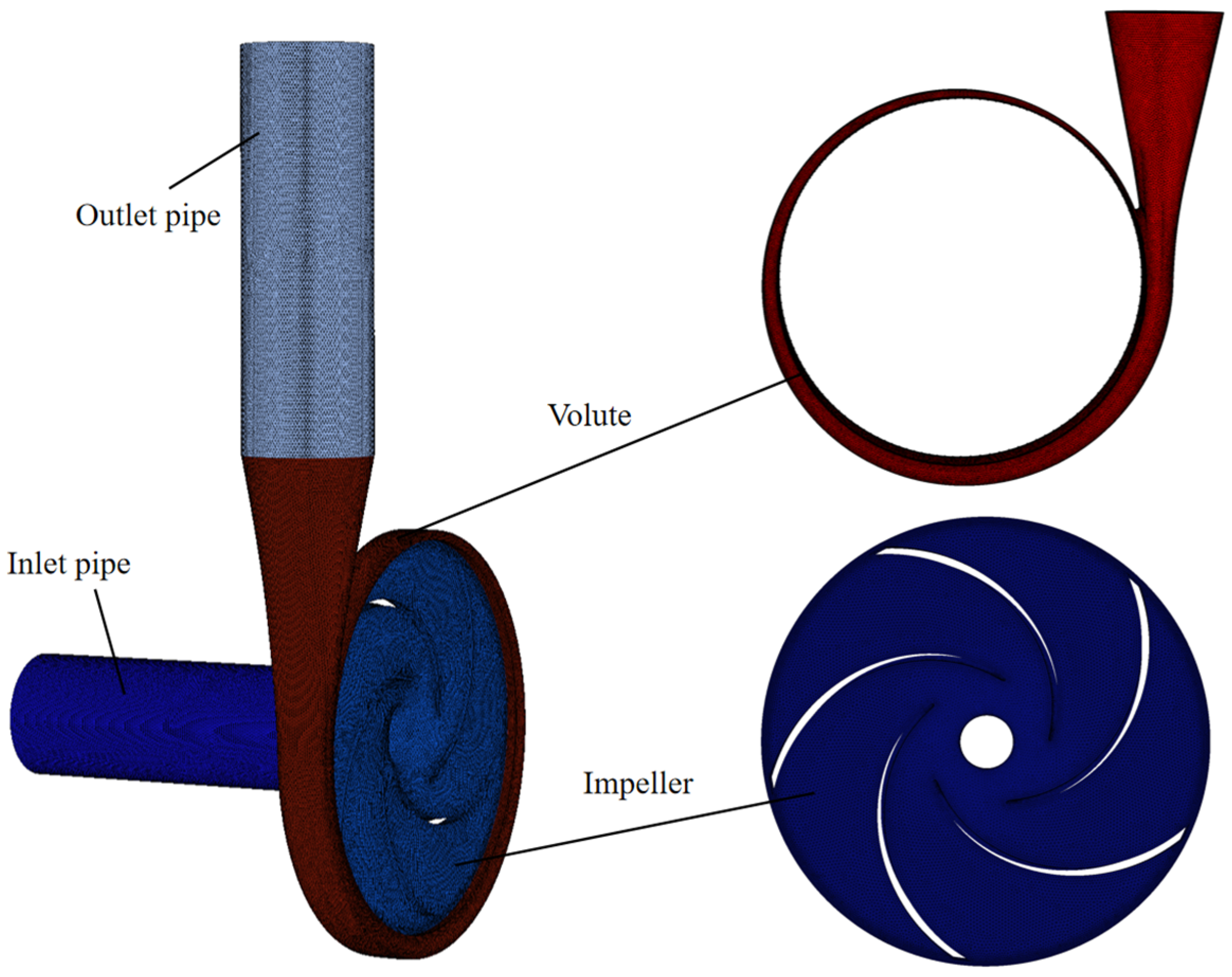 - Tarodiya, R.; Gandhi, B.K. Numerical simulation of a centrifugal slurry pump handling solid-liquid mixture: Effect of solids on flow field and performance. Adv. Powder Technol. 2019, 30, 2225–2239. [Google Scholar] [CrossRef]