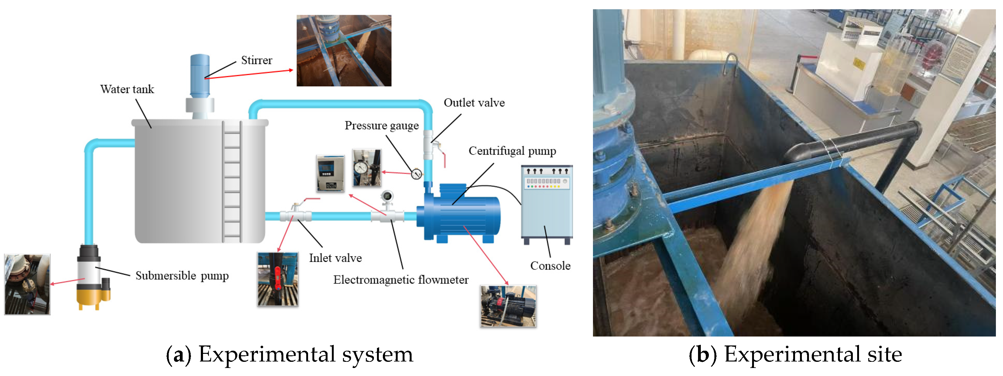 - Wang, Y.; Wang, X.; Chen, J.; Li, G.X.; Liu, H.L.; Xiong, W. An experimental insight into dynamic characteristics and wear of centrifugal pump handling multi-size particulate slurry. Eng. Fail. Anal. 2022, 138, 106303. [Google Scholar] [CrossRef]