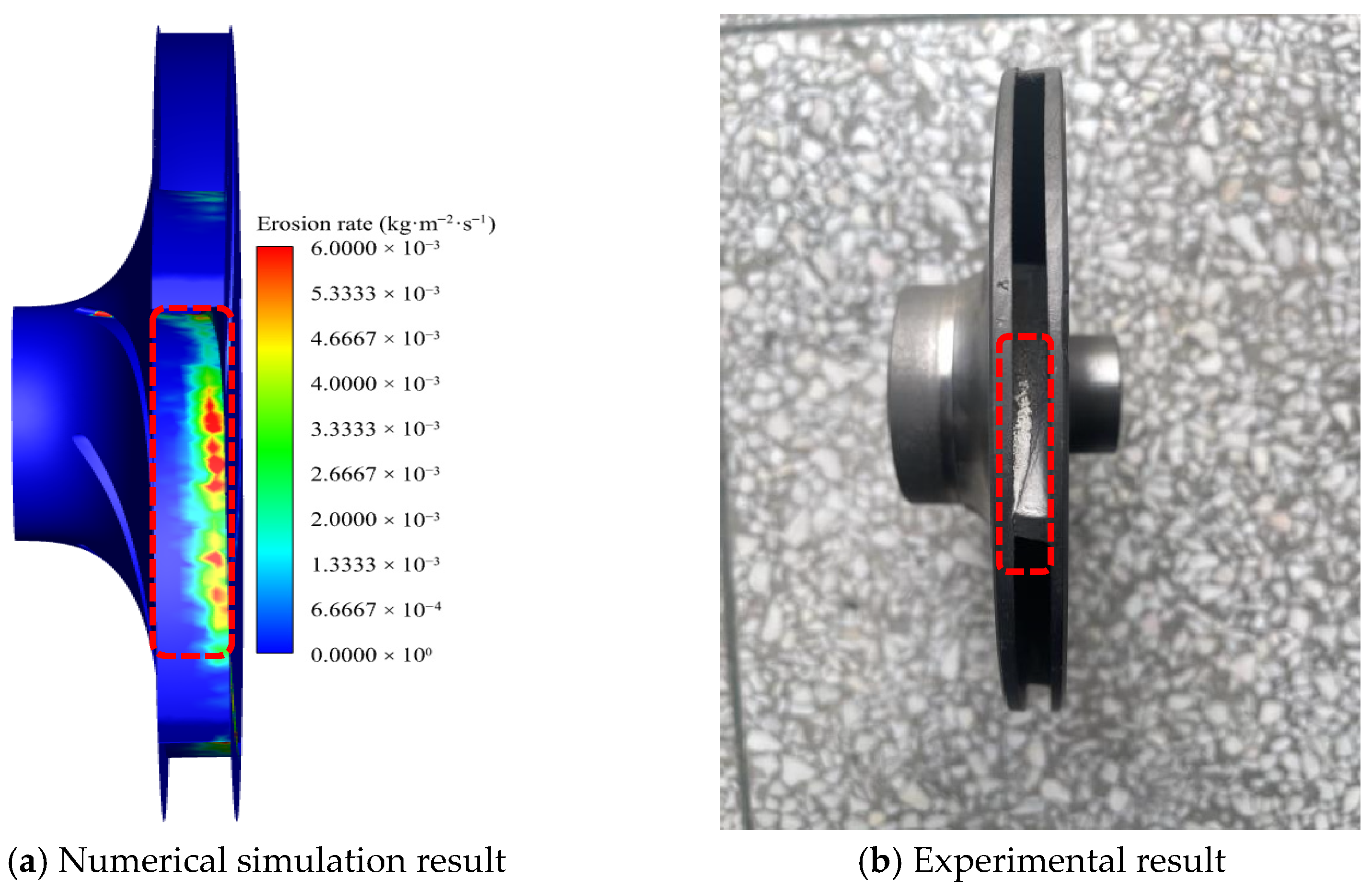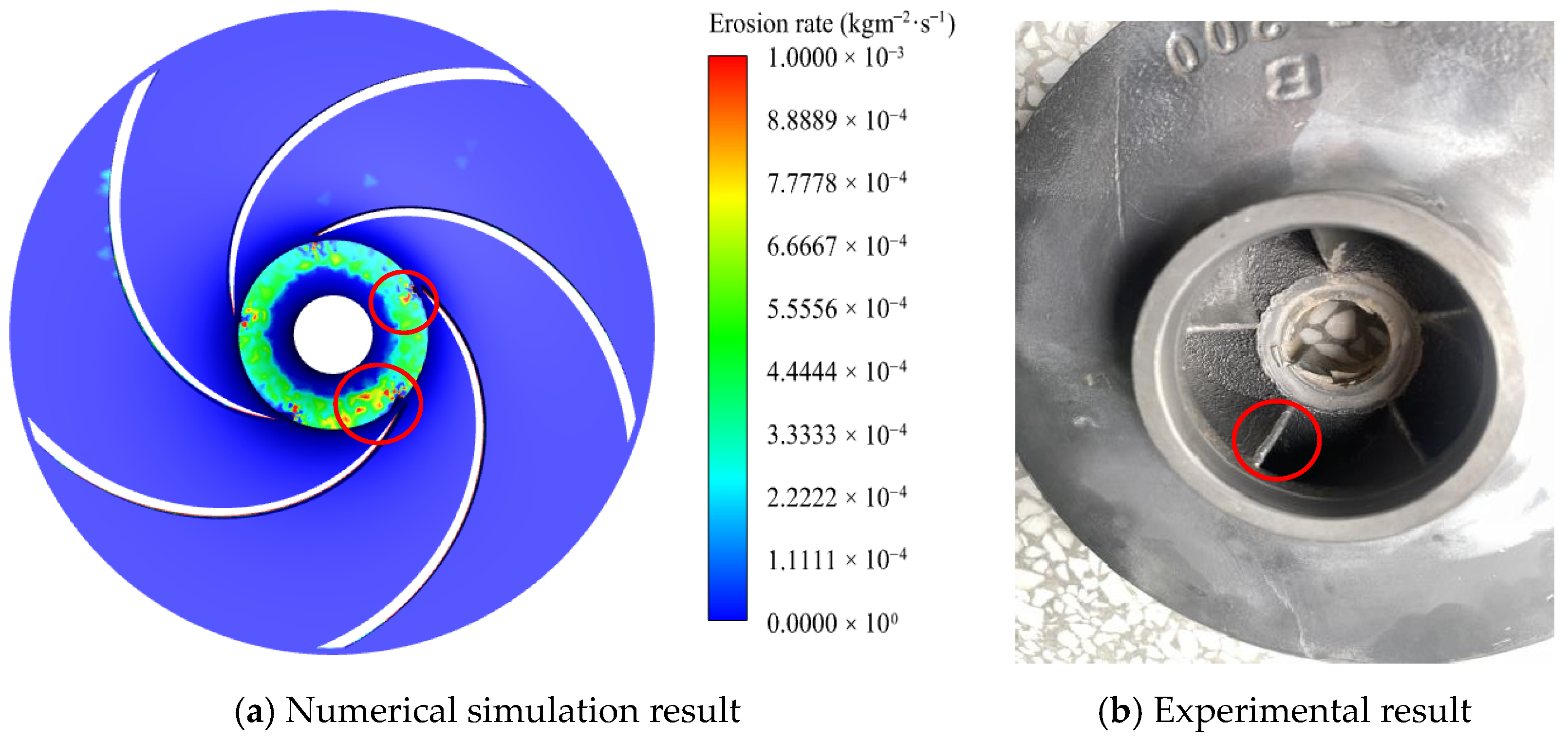 - Peng, G.J.; Chen, Q.; Bai, L.; Hu, Z.Q.; Zhou, L.; Huang, X. Wear mechanism investigation in a centrifugal slurry pump impeller by numerical simulation and experiments. Eng. Fail. Anal. 2021, 128, 105637. [Google Scholar] [CrossRef]