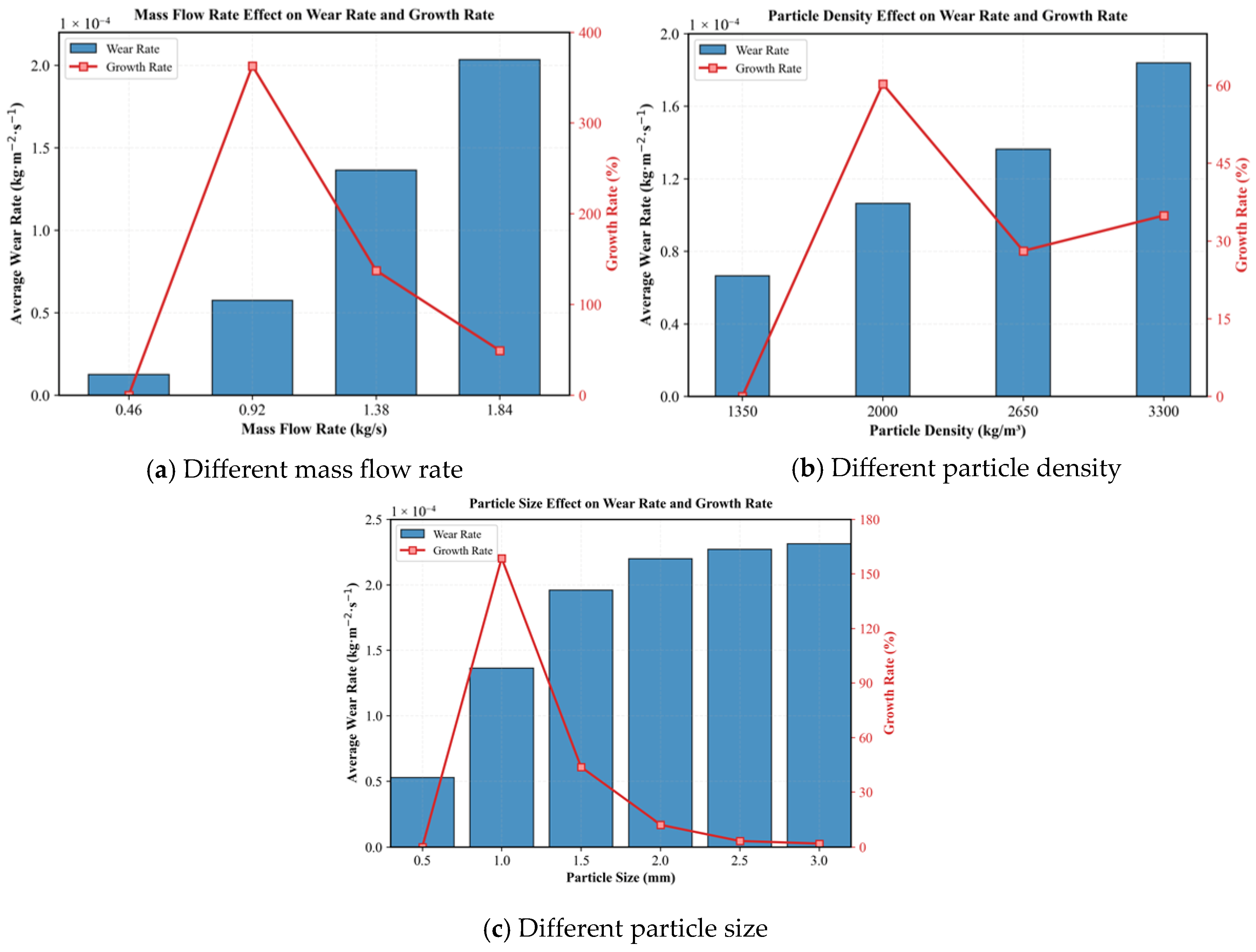 | No. | Inlet Placement Angle (°) | Inlet Diameter (mm) | Outlet Width (mm) | Average Wear Rate (kg·m−2·s−1) |