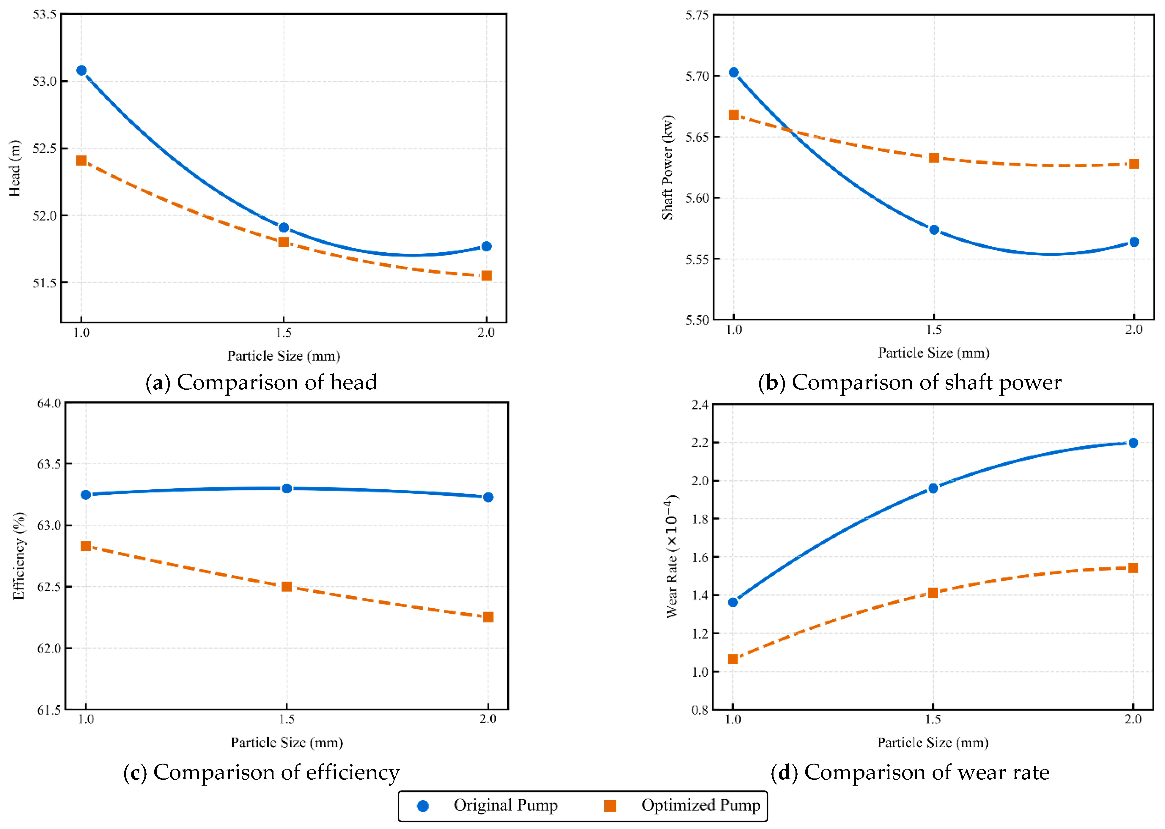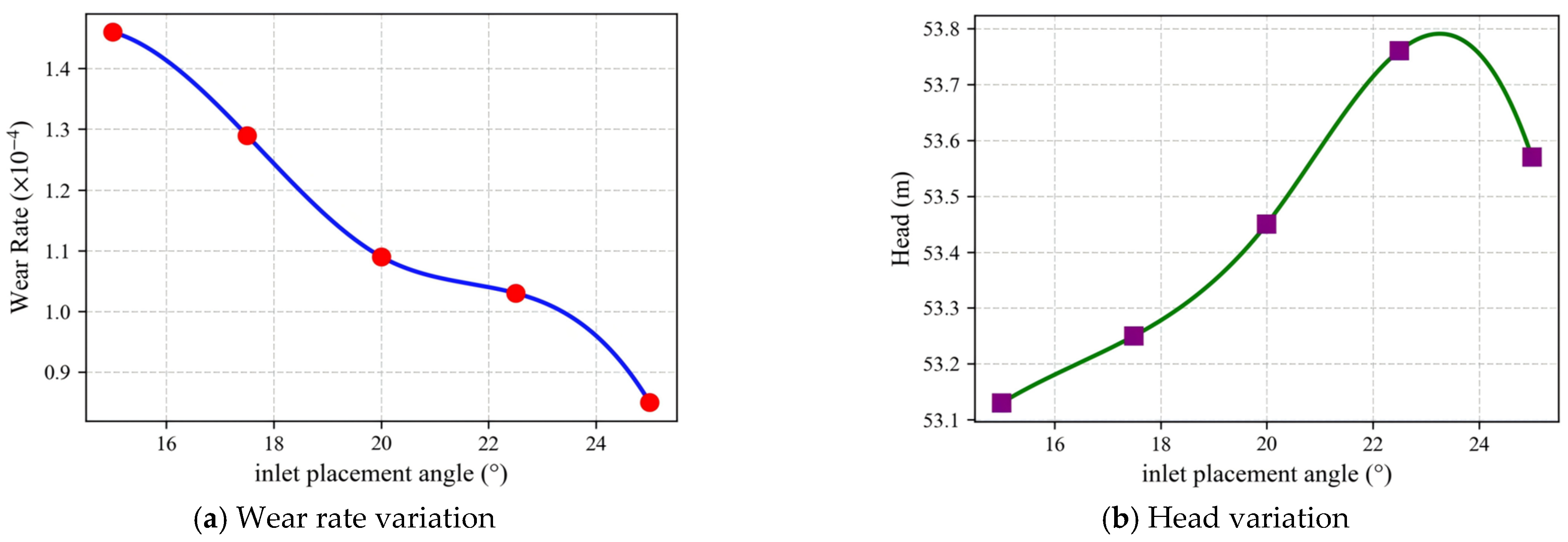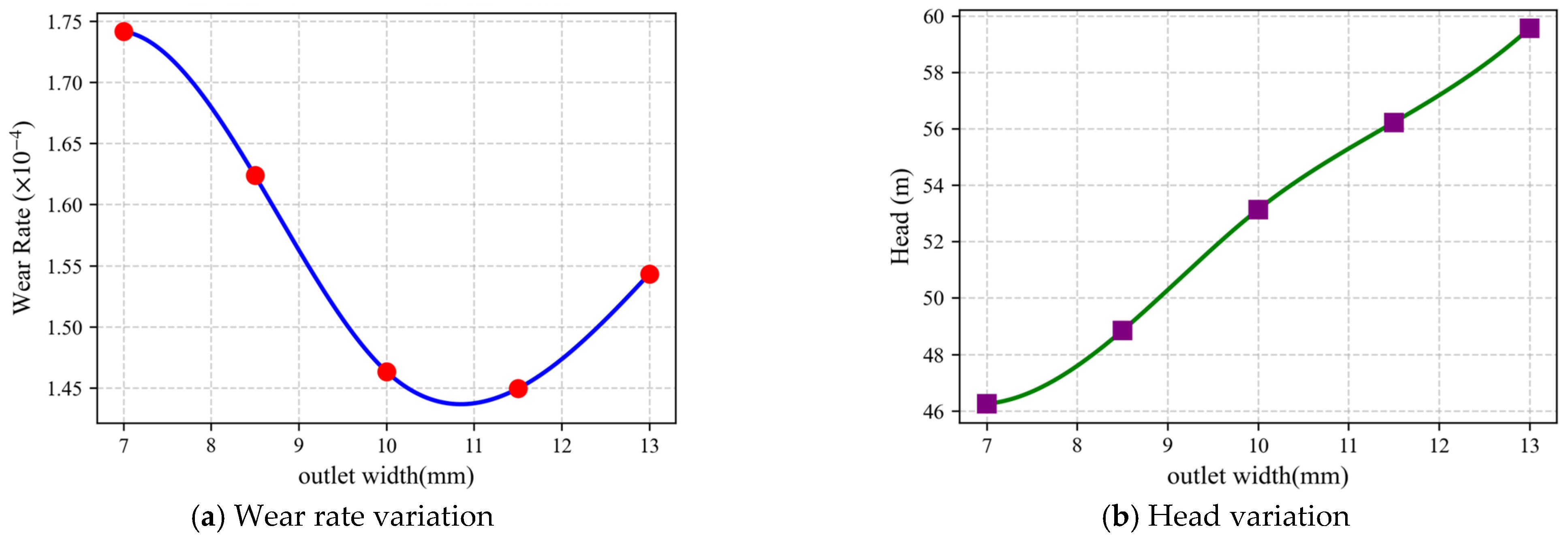 - Pu, W.; Ji, L.L.; Li, W.; Shi, W.D.; Tian, F.; Xiao, C.; Yang, Y.; Agarwal, R. Blade wear intensity of a centrifugal pump based on an improved four-way coupling method. Phys. Fluids 2025, 37, 043323. [Google Scholar] [CrossRef]