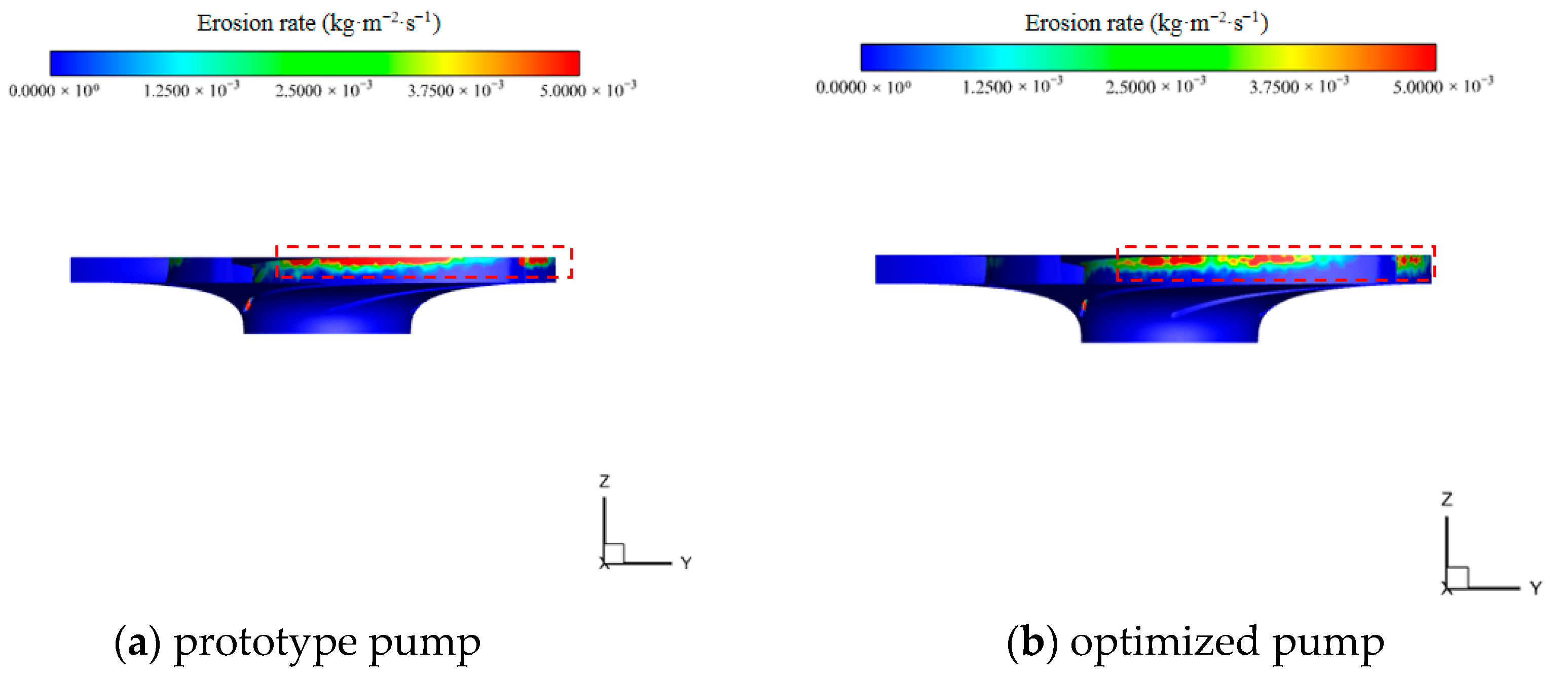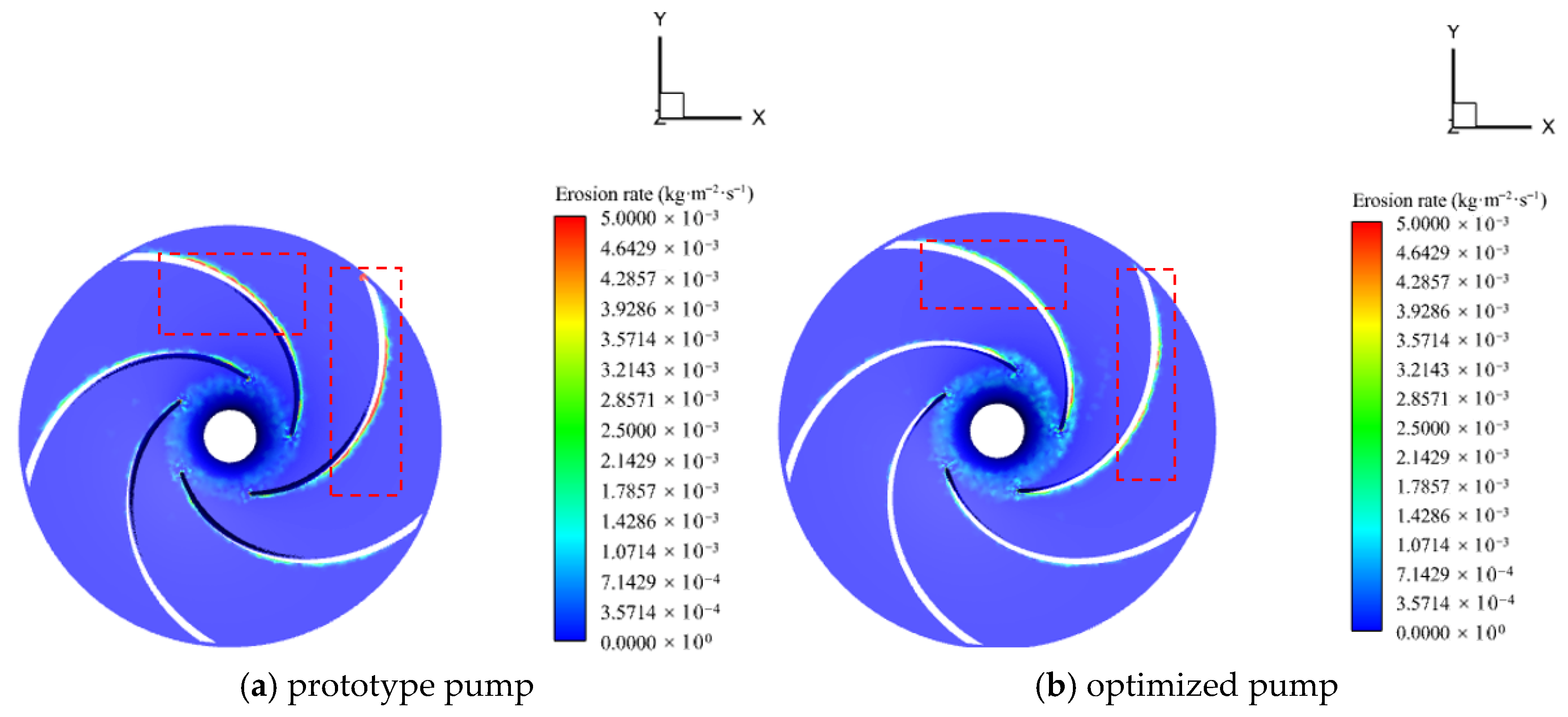 - Li, Z.Q.; Wei, X.T.; Yi, Z.Y.; Ma, Z.; Yu, Y.L.; Wang, W.Y. Numerical analysis of gas-liquid-solid erosion characteristics of the oil and gas multiphase pump. Eng. Fail. Anal. 2024, 157, 107889. [Google Scholar] [CrossRef]
