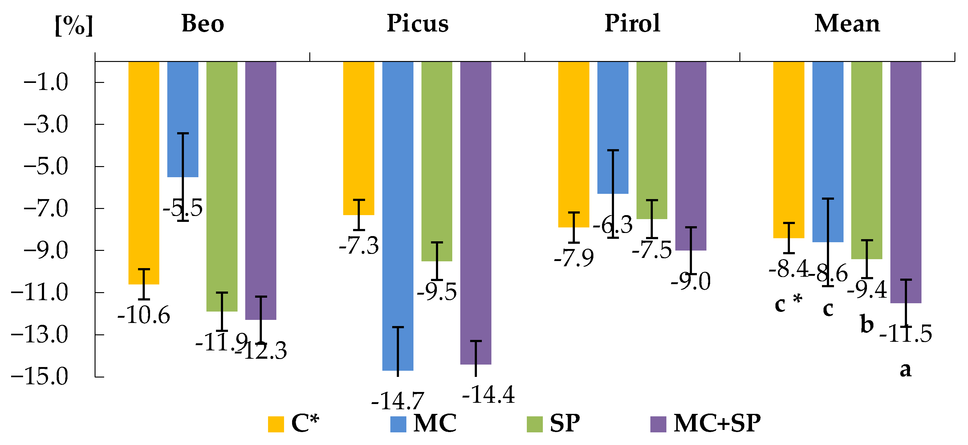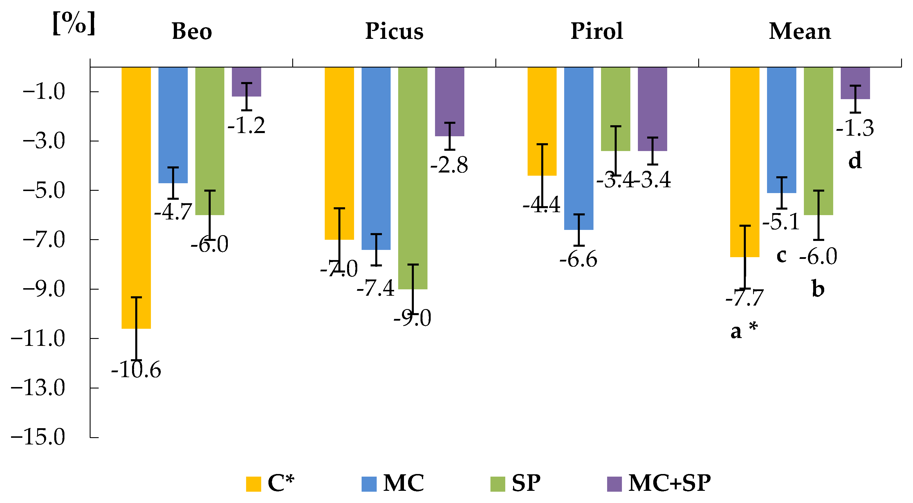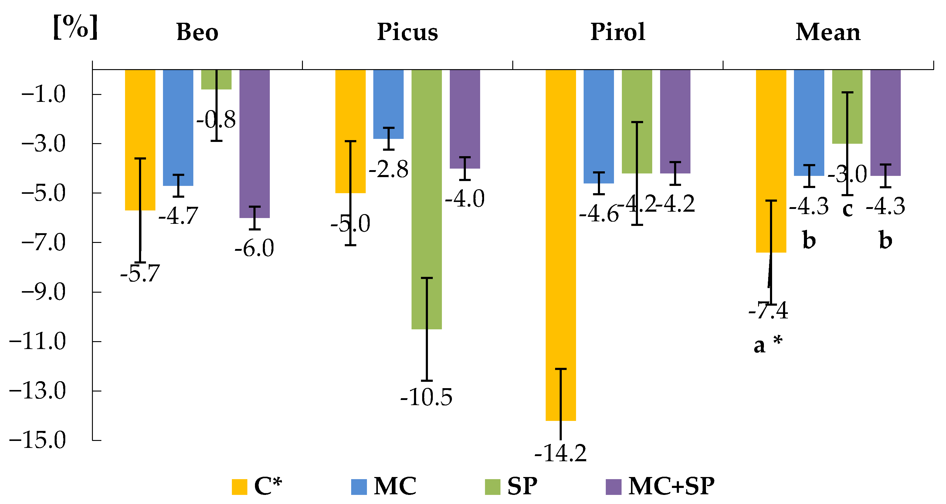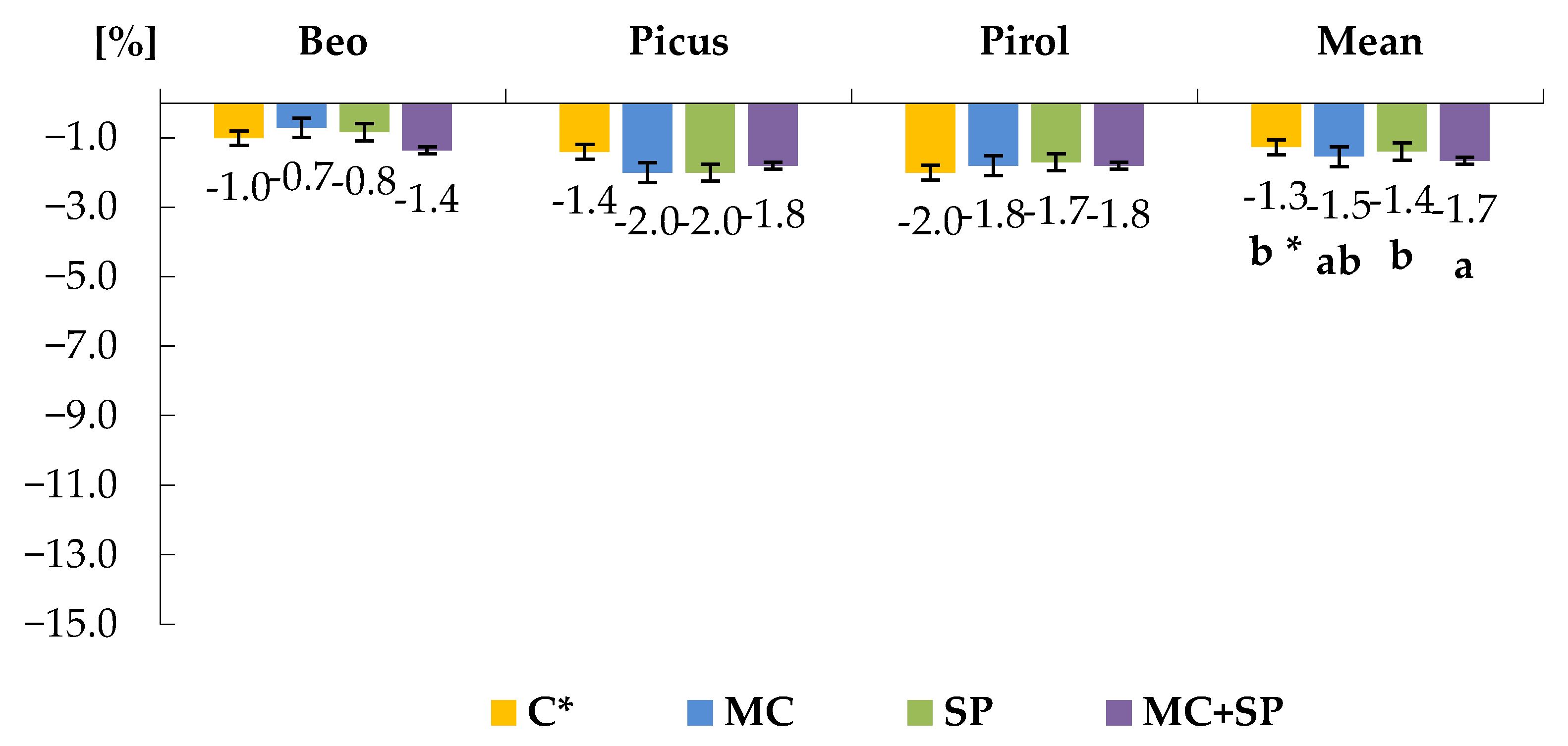| MC + SP | 4.8 ± 0.4 | 4.6 ± 0.2 | 4.7 ± 0.3 | |