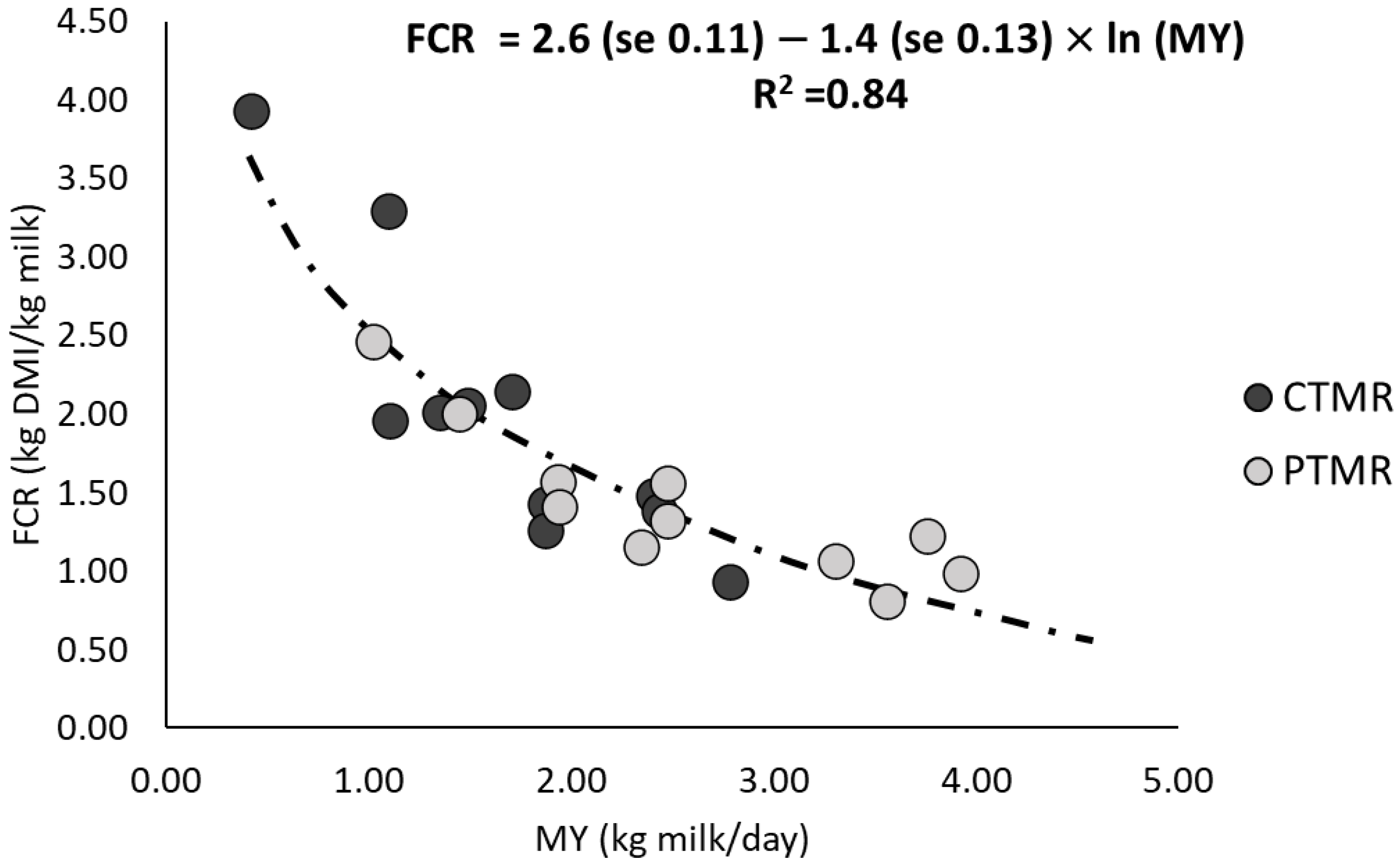 | FCR, g dry matter intake/g energy-corrected milk | 1.58 | 1.56 | 0.193 | 0.917 |