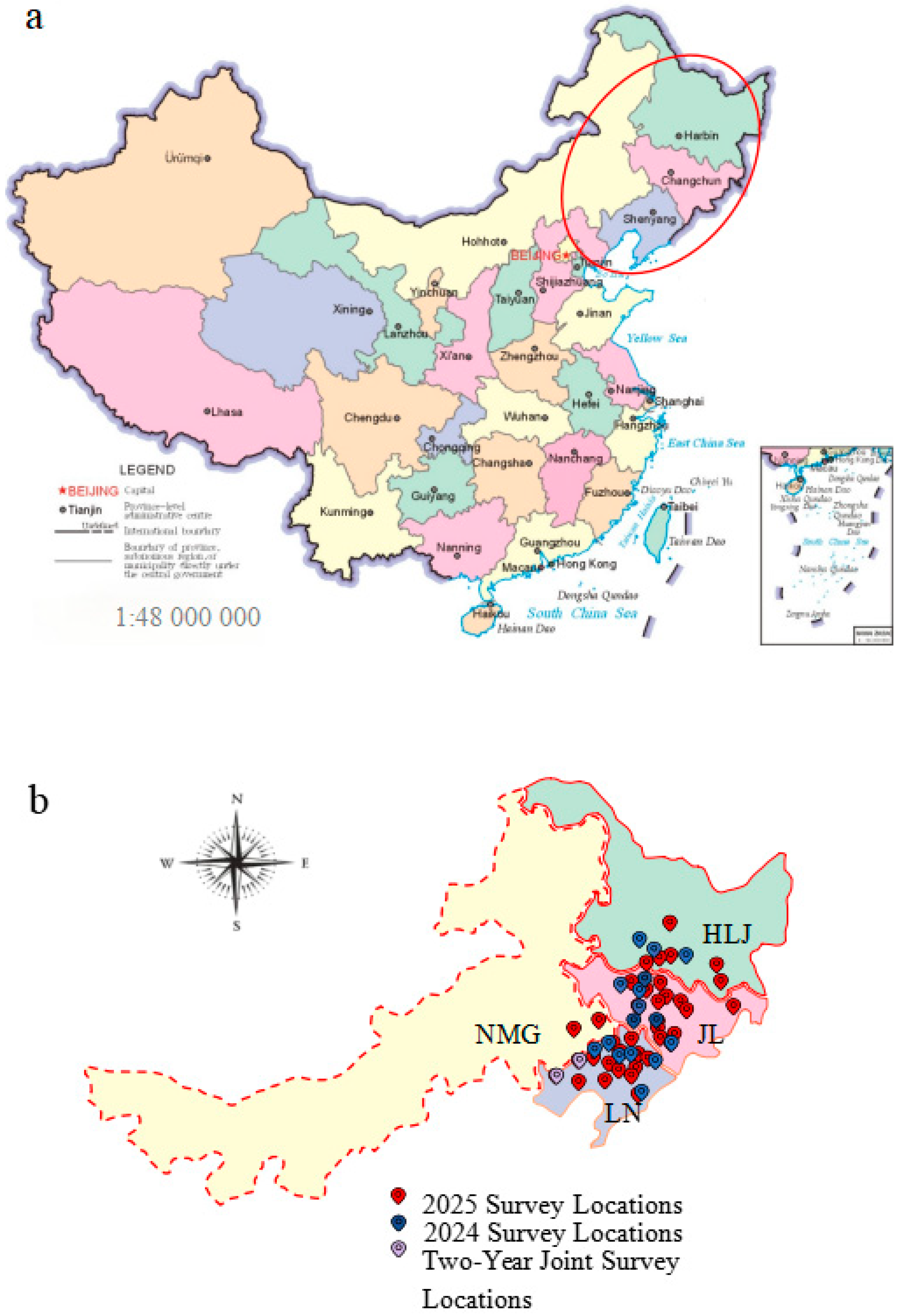 | Heilongjiang | Harbin | Minzhu Town, Daowai | HHR24-1 | 126.81672° E, 45.85549° N |
